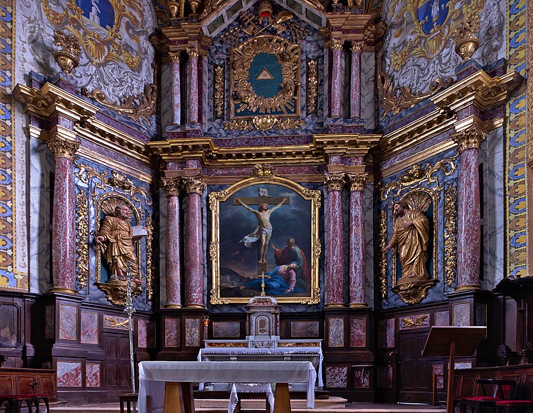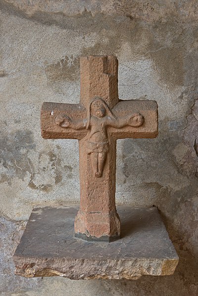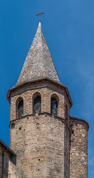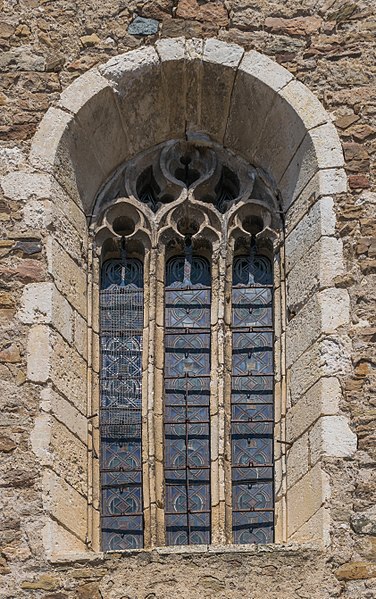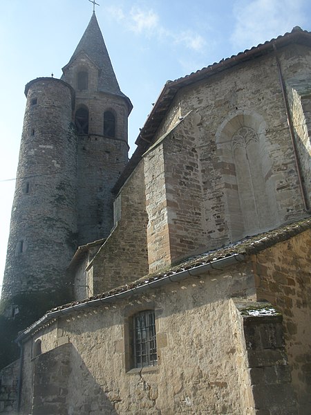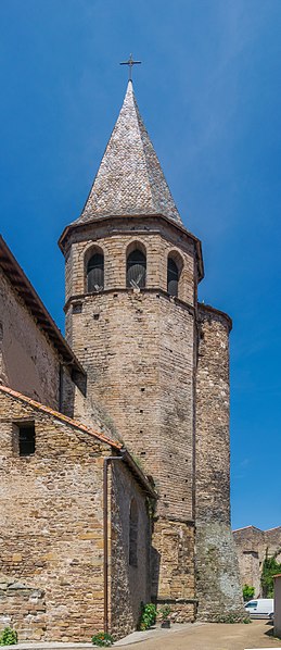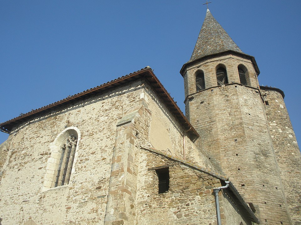 L’église Saint-Pierre, reconstruite au XVIe siècle sur une église romane antérieure endommagée lors de la croisade des Albigeois, a été édifiée perpendiculairement à l’ancienne implantation. L’édifice présente un chevet à cinq pans et une nef composée de trois travées barlongues, flanquée de chapelles symétriquement insérées entre les contreforts dans la tradition languedocienne. De hautes fenêtres à meneau et remplage flamboyant éclairent le chœur. Le portail en arc brisé, orné d’un bandeau sculpté, repose sur deux consoles figurant symboliquement un ange et un démon. Au tympan se trouve le buste d’une sainte femme, probablement issu du château de Combéfa. Le clocher octogonal, à l’allure fortifiée, est accompagné d’une tourelle ronde percée de meurtrières et s’appuie sur une base munie d’un large glacis défensif.