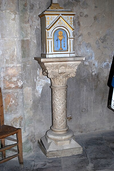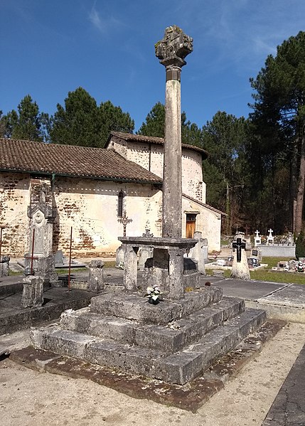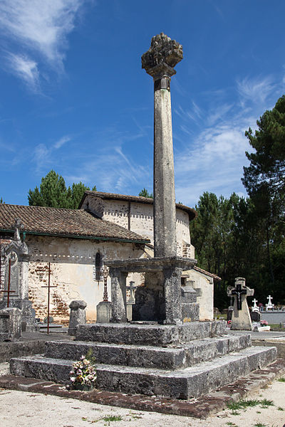 La fontaine Saint‑Clair, située à une centaine de mètres en contrebas de l'église, se compose d'un dôme en grès ferrugineux décoré de fleurs et de statuettes ; son eau a longtemps été considérée comme miraculeuse et la fontaine, dédiée à saint Clair et associée aux guérisons des troubles oculaires, fait l'objet d'une cérémonie le premier dimanche de juin. La légende rapporte que les reliques de saint Clair furent conservées en divers lieux, la chapelle Saint‑Clair de Sainte‑Eulalie à Bordeaux ayant abrité ces reliques avant leur transfert à la cathédrale de Lectoure, et la fontaine est inscrite à l'inventaire des monuments historiques depuis le 9 janvier 1990. Enfin, la commune compte une croix de Jubilé datée de 1826, en pierre, apparentée à une autre croix de la place Saint‑Vital et vraisemblablement issue de la même fabrique locale.