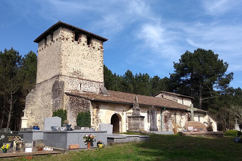 L'église Saint-Pierre de Mons, située au lieu-dit Mons sur la commune de Belin-Béliet en Gironde, est un édifice catholique inscrit aux monuments historiques. Elle se trouve sur la route départementale D110E1 qui relie Belin-Béliet à Lugos. La fondation de l'église remonte à la fin du XIe siècle ; l'édifice primitif comprenait une nef unique de 31,5 m sur 5,6 m et une abside semi‑circulaire, construite en blocs de grès ferrugineux (alios ou garluche). La fenêtre centrale de la nef traverse un contrefort et l'abside fut voûtée en cul‑de‑four au début du XIIe siècle. La porte actuelle, en arc ogival, date du XIVe siècle ; à droite s'observe l'emplacement d'une veyrine murée au XVIIIe siècle, qui permettait autrefois l'accès aux fonts baptismaux pour les enfants non baptisés ou malades. Au XVe siècle, un clocher défensif a été ajouté : l'édifice s'est doté d'une imposante tour barlongue occidentale, ornée de corbeaux et de fenêtres en forme de créneaux, liée aux préoccupations défensives des guerres de Religion. Le bas‑côté sud date du XVIe siècle ; la nef a par ailleurs été renforcée de contreforts gothiques et percée de nouvelles baies au XVe siècle. La sacristie, adossée au sud du chevet, remonte au XVIIe siècle et les fenêtres latérales de l'abside ont été percées à la même époque. La nef et la façade occidentale ont été presque entièrement reconstruites au XIXe siècle. L'édifice est inscrit au titre des monuments historiques depuis le 2 juillet 1987.