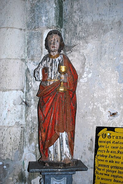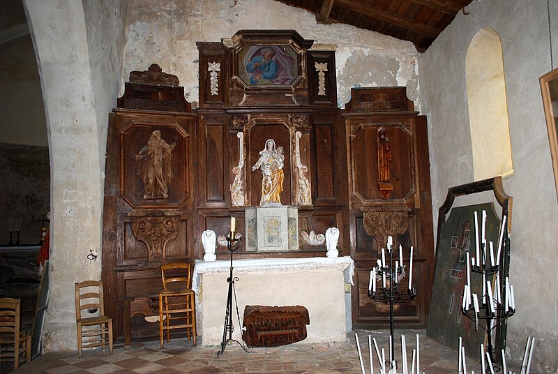 Parmi le mobilier, une statue en bois polychrome d'environ un mètre, longtemps prise pour saint Clair, est désormais identifiée comme saint Jean en raison des lettres décoratives et du symbole figurant sur le calice ; elle proviendrait vraisemblablement du prieuré Saint‑Jean de Mons. Le Christ en croix en bois polychrome date du XVe siècle. Une petite statue en grès polychrome, attribuée aux XVe‑XVIe siècles, représente sainte Quitterie et porte l'inscription « Sainte Quittéré ». La chaire fixée au mur nord de la nef est datée des XVIIe‑XVIIIe siècles. Le retable, apporté au XIXe siècle depuis l'ancienne église Sainte‑Quitterie détruite, est en chêne sculpté par Robert Biguerie au XVIIIe siècle ; il présente au centre une Vierge à l'Enfant polychrome du XVIIIe siècle, encadrée à gauche par saint Pierre et à droite par un pèlerin.