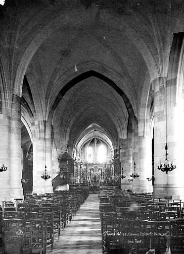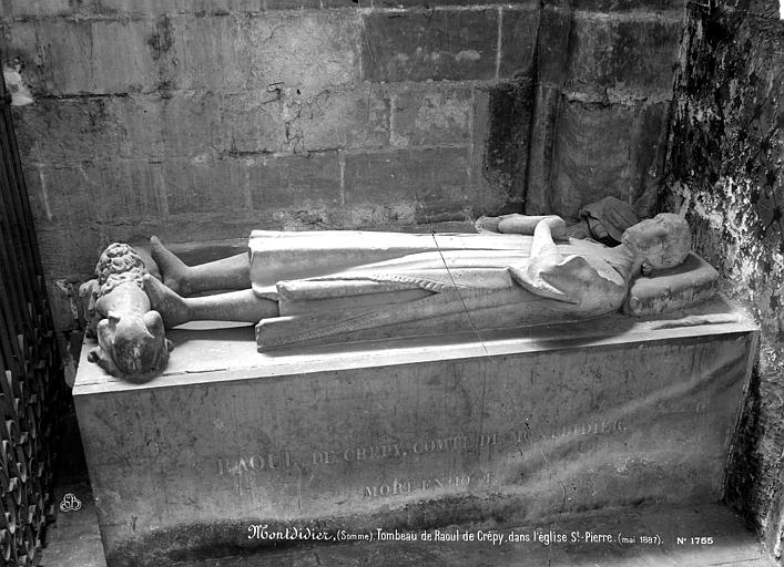 L'église Saint-Pierre est une église catholique située à Montdidier, dans la Somme. Ses parties les plus anciennes remontent au XVe siècle et la construction, engagée vers 1460, resta inachevée au XVIe siècle. Le portail, de style gothique flamboyant, fut élevé en 1538 par Chaperon, maître maçon de la cathédrale de Beauvais. La ville de Montdidier ayant été presque détruite en 1918, l'édifice a été restitué à l'identique durant l'entre-deux-guerres. L'église est classée au titre des monuments historiques depuis 1920. Le plan rappelle celui d'une église halle : les voûtes, assez basses, datent de 1460, il n'y a pas de transept et les collatéraux présentent une hauteur inhabituelle ; la façade ouest est typique du gothique flamboyant et comporte des motifs de la Renaissance, comme des coquilles. Dans le bas-côté nord se trouvent le gisant de Raoul de Crépy, comte de Montdidier (mort en 1074) daté du premier quart du XIVe siècle, et une mise au tombeau du premier quart du XVIe siècle, classée au titre des objets le 1er février 1907 et marquée d'une influence italienne. Le bas-côté sud abrite une cuve baptismale en pierre noire de Tournai, datée du XIIe siècle : la cuvette et la base sont réunies par un cylindre encadré de quatre colonnettes aux angles, et le dessus comme les côtés sont ornés d'arcatures et de motifs de vigne ; ce mobilier est classé au titre des objets le 23 octobre 1897. Le chœur conserve un beau Christ roman. L'église possède également une chaire, une cloche, une tribune d'orgue et une verrière du XVIe siècle. Les boiseries, les confessionnaux et les autels secondaires datent de l'entre-deux-guerres.