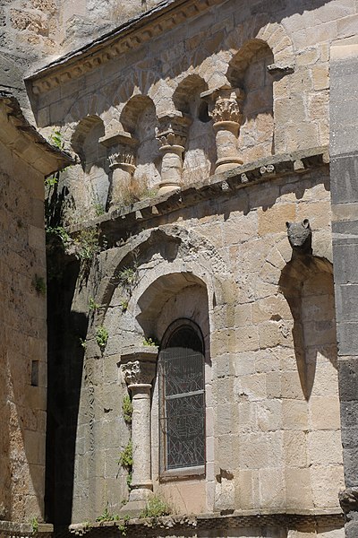 L'église Saint-Pierre de Nant, située dans la commune éponyme de l'Aveyron en région Occitanie, est classée monument historique depuis 1862. Nant se trouve au confluent de la Dourbie et du Durzon, entre les Grands Causses et les Cévennes. Selon Gallia Christiana, une tradition fait remonter la fondation du monastère à saint Amand, évêque de Maastricht, vers 669, puis signale une destruction attribuée aux Sarrasins un siècle plus tard. La première mention documentaire de l'église date du 11 février 926, lorsque Bernard, vicomte de Rouergue, et son épouse Udalgarde donnent leurs biens à Nant à l'abbaye de Vabres afin d'y établir un monastère dédié à saint Pierre de Rome. Le prieuré reçoit de nombreux dons des comtes de Toulouse et de Rouergue au XIe siècle ; ainsi Raymond Ier légua des biens en 961 et l'évêque de Lodève Fulcrand fit un don en 988. À partir de la fin du XIe siècle, l'abbaye Saint-Victor de Marseille étend son influence dans le Rouergue méridional : en 1082 l'évêque de Rodez soumet plusieurs établissements à Saint-Victor, et une bulle de Pascal II en 1116 souligne l'étendue des paroisses relevant du prieuré de Nant. En 1135 le pape Innocent II, à la requête du prieur Raymond, élève le prieuré en abbaye en rappelant son obédience à la règle bénédictine et en mentionnant les nombreuses églises qui lui sont rattachées, y compris dans le diocèse de Nîmes ; les dons se poursuivent au XIIe siècle mais diminueront au profit des nouveaux ordres religieux. L'abbaye souffre de la guerre de Cent Ans malgré ses remparts : le porche est alors fortifié, ses arcades basses sont fermées et une échauguette y est ajoutée ; en 1317 elle est rattachée à l'évêché de Vabres. Les XIVe et XVe siècles voient des troubles et des difficultés financières : révoltes de moines contre l'autorité abbatiale, occupation anglaise en 1361 puis éviction par des bandes commandées par Bertrand du Guesclin, et résistances aux tentatives de rattachement à Saint-Victor. Les guerres de Religion portent un coup fatal à la communauté : le cloître et les bâtiments conventuels sont détruits entre 1564 et 1568, ce qui entraîne plus tard la dispersion des moines et la vie en ordre disséminé. En 1701, la population de Nant utilise la terrasse de l'église pour monter des canons contre une attaque de camisards. L'église est sécularisée en 1769 puis transformée en chapitre collégial ; la conventualité est supprimée par décision royale le 13 février 1773, puis le chapitre est définitivement supprimé par le dernier évêque de Vabres, décision confirmée par une bulle pontificale huit ans plus tard. En 1785 l'église abbatiale devient église paroissiale à la place de Saint-Jacques, mesure qui contribue à sa conservation, et ses fenêtres sont agrandies la même année. Au XIXe siècle l'édifice nécessite d'importants travaux : le clocher qui surmontait la croisée du transept est abattu en 1803 et la vente de l'église Saint-Jacques en 1810 finance la construction d'un clocher sur le massif de la façade. Lors du rehaussement du sol réalisé par l'abbé Barcles (1818-1842) est découvert un trésor de monnaies datées de 1578, découverte qui permet d'engager des restaurations ; des travaux plus larges sont ensuite entrepris après le classement de l'église. L'étude de Jean Vallery-Radot en 1940 a mis en lumière l'importance du monument et des analyses ultérieures, notamment celles de Jacques Bousquet et d'Anne-Marie Pêcheur, ont replacé l'édifice dans le contexte des recherches sur le XIe siècle. Orientée est-ouest, l'église mesure 37 mètres de long, environ 20 mètres de large et 13 à 14 mètres de haut ; son plan est en croix latine avec une nef de trois travées flanquée de collatéraux étroits et un transept débordant, perturbé par la construction de chapelles latérales dont plusieurs datent du XIVe et du XIXe siècle. L'édifice présente un vaisseau central aux colonnes adossées aux piles, un chevet formé d'une abside à cinq pans et d'absidioles aux tracés différenciés — l'absidiole nord à trois pans, l'absidiole sud à cinq pans concaves — toutes voûtées en cul-de-four, et des chapiteaux sculptés dont l'analyse permet d'identifier plusieurs phases de construction. Trois campagnes principales se distinguent : la première, visible au chevet et au transept, conserve des procédés préromans et des sculptures inspirées de modèles méridionaux ; la seconde concerne les parties basses de la nef, probablement antérieures à la tutelle de Saint-Victor ; la troisième porte sur le massif occidental et la voûte de la nef, liée à l'enrichissement de l'abbaye après son élévation en abbaye. Un cordon sculpté de l'abside porte une inscription de dédicace dont l'analyse épigraphique permet de la situer à la fin du XIe siècle. L'orgue, installé au premier étage du massif antérieur en 1862, est le premier instrument construit par le facteur Thiébaut Maucourt avec l'aide de Frédéric Junck ; sa partie instrumentale est protégée comme objet et il a été restauré en 1985 par Michel Giroud. Le "Beau Christ de Nant", statue en bois de sapin de 2,30 m réalisée par un sculpteur anonyme du XVIIIe siècle et à l'origine polychrome, demeura au centre du village pendant 230 ans avant d'être placée dans le collatéral sud après restauration en 1963-1964 par Jude François et Charles Février. Enfin, les stalles du XVIIIe siècle de l'église sont classées au titre d'objet depuis 1989.