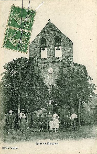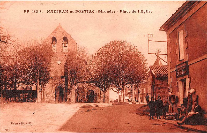 L'église paroissiale Saint-Pierre, édifice catholique situé au cœur du bourg de Naujan-et-Postiac (Gironde), est de fondation romane. La construction originelle, attribuée au XIIe siècle, conserve les murs de la première travée occidentale de la nef ainsi que les supports intérieurs correspondants. Au XVIe siècle, le chevet plat a été élevé et deux chapelles ouvertes ont formé un transept ; c'est probablement à cette époque que l'église a été partiellement mise en défense. Cette fortification subsiste en partie au niveau de la nef et se signale par un crénelage. Les transformations du XIXe siècle ont donné le couvrement actuel, agrandi les deux chapelles latérales pour constituer de véritables collatéraux et entraîné l'exécution du décor peint du chœur. L'édifice est inscrit au titre des monuments historiques par arrêté du 13 février 2001 en raison de son décor intérieur daté du XIXe siècle. Sur le mur sud se lisent aussi les vestiges de plusieurs cadrans canoniaux.
