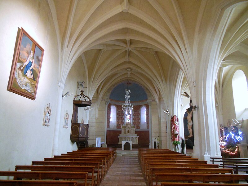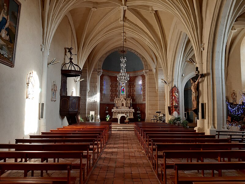 L’église Saint-Pierre de Nerbis, dans les Landes, est une ancienne église prieurale dont le plan associe une nef, un bas-côté sud, un transept et un chevet à trois absides. Elle conserve des éléments romans, notamment le chevet, l’abside centrale et deux absidioles voûtées en cul-de-four, ainsi que des chapiteaux du chœur inspirés de l’abbaye de Saint-Sever. Un clocher fortifié, élevé au XIVe siècle, a perdu sa partie haute lors d’un incendie au XVIe siècle. L’édifice fut agrandi au XVIe siècle par un collatéral ; la nef et le bas-côté reçurent alors des voûtes à liernes et tiercerons ornées de clefs sculptées, dont l’une porte la date de 1547. Le retable de l’autel principal a disparu ; la console restante supporte une Vierge et les statues en bois de saint Pierre et saint Paul. La travée et le chœur romans, au relief contenu, mesurent environ 33 mètres d’est en ouest, le transept n’excédant pas 20 mètres, et la voûte atteint une hauteur d’environ neuf mètres. L’édifice compte trente-cinq clefs de voûte dont le décor renvoie au travail de bâtisseurs itinérants, apparenté à des motifs visibles à la cathédrale de Bordeaux ou au château de Blois. Deux chapiteaux de l’arc triomphal présentent des décors distincts : feuillages et animaux. Dans le mur nord subsistent des ouvertures attribuées à des postes d’observation et de défense, une porte murée au XVIIIe siècle et un bénitier en creux qui étaient probablement destinés aux cagots et gésitains, dont un coin du cimetière leur était réservé. L’autel de la chapelle latérale présente des scènes : à gauche le sacrifice d’Abraham, à droite l’agonie de Jésus au Jardin des Oliviers.