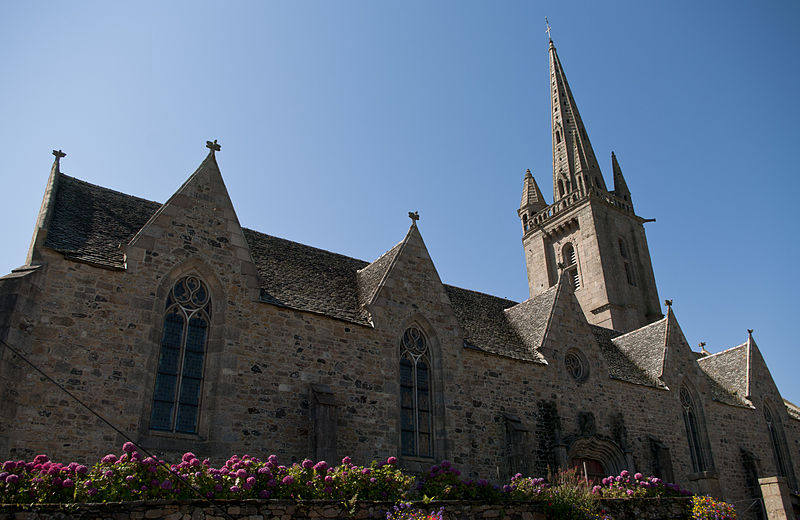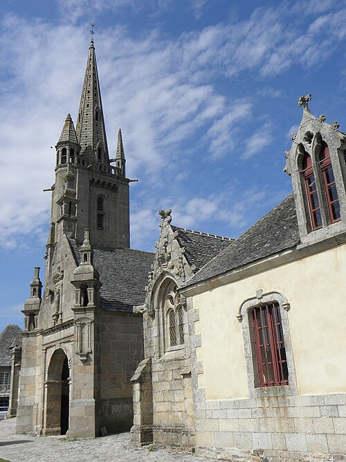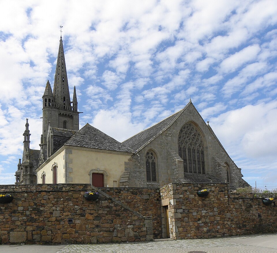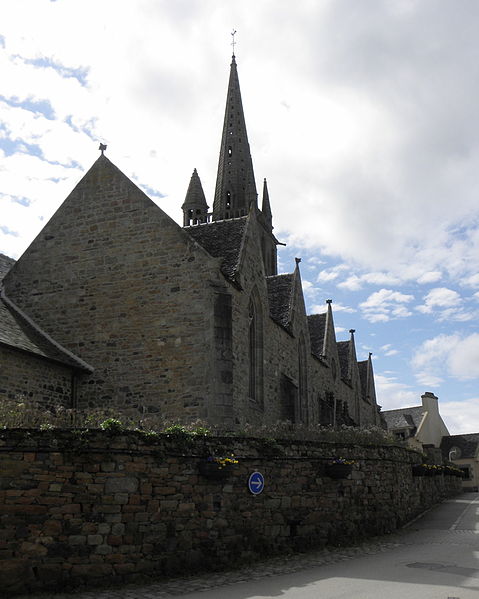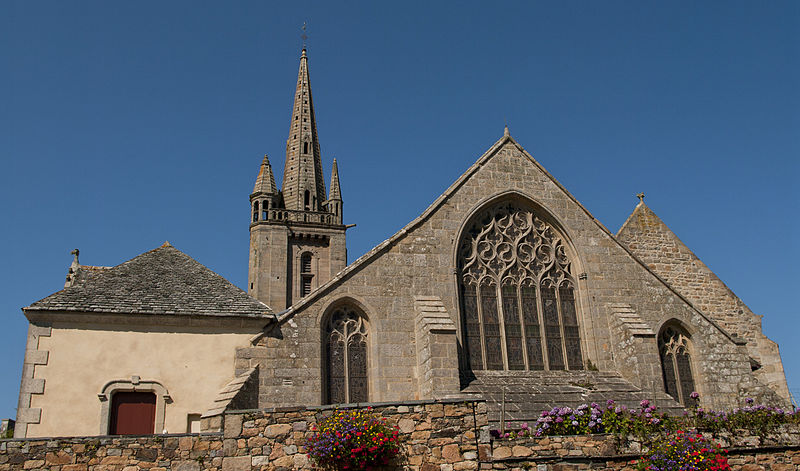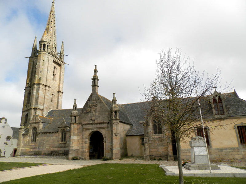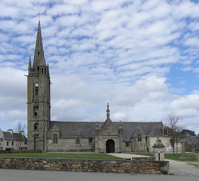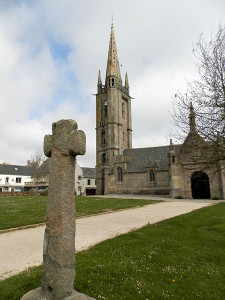 L'église Saint-Pierre, église catholique de Plougasnou (Finistère), est formée de deux nefs accolées, auxquelles s'ouvrent des chapelles. Dès le XIe siècle, une église romane occupait vraisemblablement le site : en 1040 la comtesse Berthe donna la paroisse à l'abbaye Saint-Georges de Rennes, donation renouvelée en 1062, et des vestiges romans subsistent encore. L'édifice, classé au titre des monuments historiques en 1914, est en grande partie reconstruit à partir du XVe siècle et porte la marque d'une importante campagne de travaux au XVIe siècle. Le clocher, élevé de 1582 à 1584 par Jean Le Taillander, est surmonté d'une flèche octogonale haute de 45 mètres, entourée d'un balustre, de clochetons d'angle et d'une tourelle d'escalier octogonale au coin sud-est. Le portail occidental, daté « 1616 », est surmonté de trois clochetons à dôme et une niche du fronton abrite une statue de saint Pierre ; la baie sud-ouest, contemporaine, rappelle l'ornementation du château de Kerjean. L'église présente un plan composite et irrégulier : les lambris intérieurs, avec entraits apparents, sont peints en bleu et piquetés d'étoiles d'or. La nef, flanquée de bas-côtés, compte quatre travées au nord et cinq au sud, d'élévation et d'époque différentes ; au sud se trouvent trois arcades romanes en plein cintre à simple rouleau, recouvertes d'un enduit épais qui empêche de préciser leur mode de construction. Le côté nord, doté d'arcs brisés portés par des piles rondes et probablement construit au XVIe siècle, pourrait être l'œuvre du même architecte que le clocher, les voussures présentant un profil analogue à celui de ses baies. Le collatéral nord, élargi au XIXe siècle, a une largeur voisine de celle de la nef, sauf à la travée est où il conserve la dimension d'origine identique au collatéral sud. Le passage de la nef au chœur se signale par un léger rétrécissement ; les fortes piles carrées qui le cantonnent témoignent d'un projet d'arc diaphragme resté inachevé. Le chœur de quatre travées, élevé en deux campagnes au XVe siècle, est séparé des bas-côtés par des arcades brisées reposant sur des piliers octogonaux aux chapiteaux lisses et s'achève par une grande baie à remplage de style gothique flamboyant, érigée vers 1500. Le mobilier intérieur est riche : la statuaire, en partie issue de chapelles voisines détruites, comprend notamment le maître-autel du XVIIe siècle, le retable de la confrérie du Rosaire daté de 1668, une Vierge de poutre de gloire du XVIIe siècle, le groupe Notre-Dame-de-Pitié (fin XVe siècle), un groupe « Sainte Anne et Marie » du XIXe siècle et des statues en chêne polychrome du XVIe siècle identifiées comme saint Samson et saint Alar (confondu en Bretagne avec saint Éloi). L'église conserve également deux tableaux du père Édouard Le Grand (1856-1936), provenant de la chapelle Saint-Yves de Kermaria et représentant le Vœu de Charles de Blois et la Mort de saint Yves. Le calice et l'ostensoir en argent doré, datés du XVIIe siècle, furent exposés à l'Exposition universelle de 1900 à Paris. Les orgues, construites par Jules Heyer en 1852, ont leur partie instrumentale classée au titre des monuments historiques. La croix dite du Bourg, inscrite en 1971, se trouvait à l'origine adossée au mur d'une propriété du bourg ; il s'agit d'une croix monolithe en granit, de forme latine à bras pattés, dont le fût de section rectangulaire s'amincit vers le sommet. Deux cavités circulaires subsistent — l'une au cœur du croisillon, l'autre à la base du fût — et le socle est constitué d'un bloc en forme de meule ; la croix pourrait dater de l'époque carolingienne.