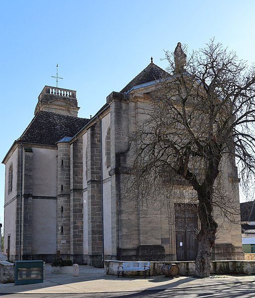 L'ancienne église du XIVe siècle, en très mauvais état, fut démolie en 1753. Le nouvel édifice fut élevé entre 1754 et 1757 par Jean Caristie, entrepreneur-architecte dijonnais, d'après les plans et devis dressés en 1751 par Charles-Elie Le Jolivet, architecte des États de la province et voyer de Dijon. Le clocher, initialement placé sur la croisée du transept, fut supprimé en 1776 en raison de sa mauvaise construction. En 1778, le sous-ingénieur des Ponts et Chaussées Emiland Gauthey fit édifier une tour-clocher adossée à l'abside. La terrasse faîtière du clocher, prévue par Pierre-Jean Guillemot en 1781, ne fut achevée qu'en 1784.