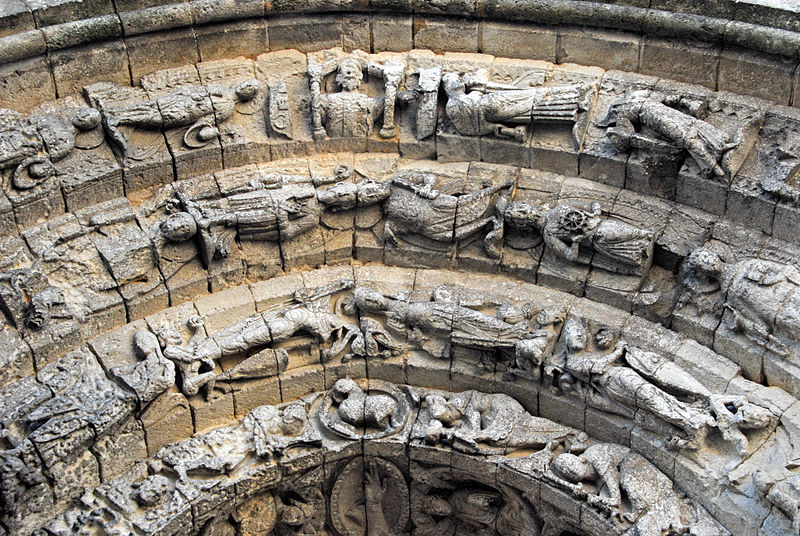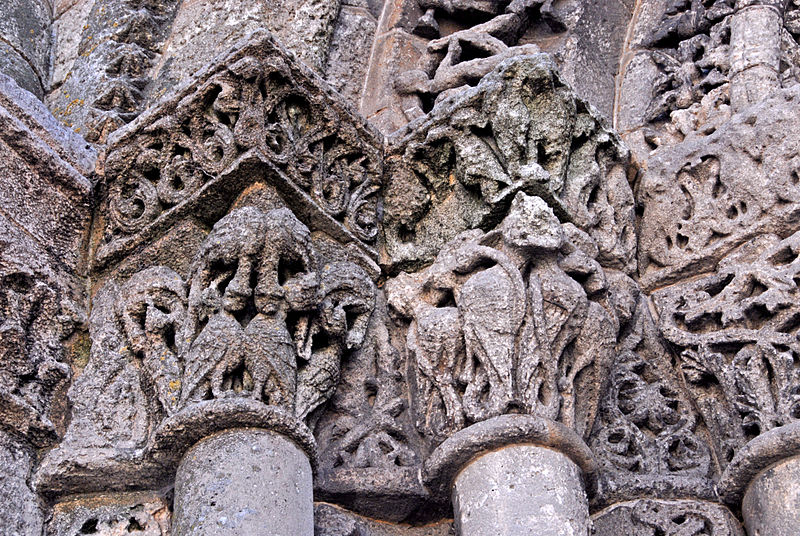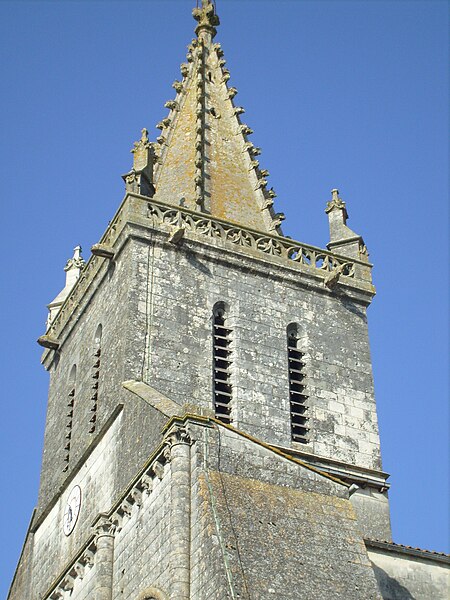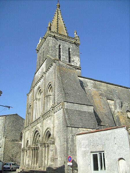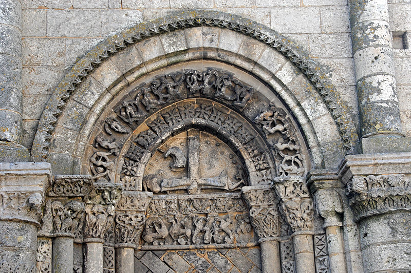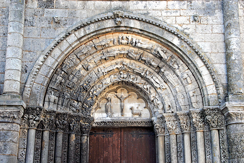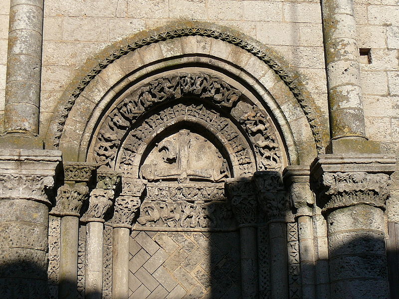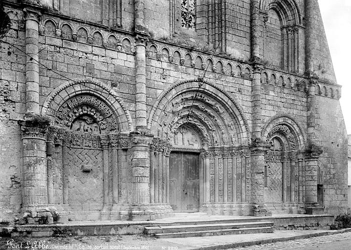 L'église Saint-Pierre de Pont-l'Abbé-d'Arnoult, en Saintonge (Charente-Maritime, Nouvelle-Aquitaine), est un édifice roman saintongeais. Elle a été bâtie au XIIe siècle et modifiée au XVe siècle. La façade médiévale présente un portail central à cinq rangs d'archivoltes, deux arcades aveuglées formées d'un appareil en bâtons rompus et des colonnes imbriquées ou cannelées. Les archivoltes sont ornées de nombreuses figures ; le tympan central représente une scène de crucifixion, tandis que les tympans des portails latéraux montrent la crucifixion de saint Pierre et saint Pierre délivré de la prison. L'église est classée au titre des monuments historiques depuis le 12 décembre 1887. Pour aller plus loin, on peut consulter la liste des églises et la liste des monuments historiques de la Charente-Maritime, les notices sur Pont-l'Abbé-d'Arnoult et le prieuré local, ainsi que des ressources en ligne telles que Clochers de France, GCatholic.org, l'Observatoire du patrimoine religieux, la base Mérimée et Structurae ; des portails thématiques (architecture chrétienne, catholicisme, monuments historiques français, Charente-Maritime) offrent également des références.