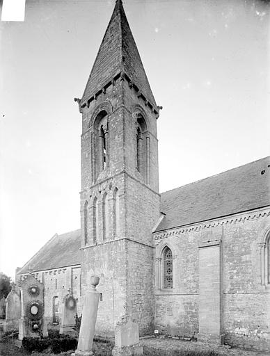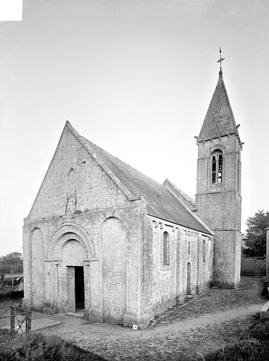 L'église paroissiale Saint‑Pierre d'Huppain est située dans le bourg d'Huppain, dans le Calvados ; la commune a été associée à Port‑en‑Bessin en 1972 et l'église dépendait depuis le XIIe siècle du patronage de l'abbaye de Cerisy. La nef et la porte sud du chœur datent de la fin du XIe ou du début du XIIe siècle, et le clocher‑porche a été élevé au cours du XIIe siècle. Au XIIIe siècle, le pignon occidental a été refait et le chœur reconstruit. Aux XVIe ou XVIIe siècles, le porche a été fermé. Au XVIIIe siècle, on a posé le lambris de couvrement de la nef, percé la porte sud de la nef, agrandi deux baies sur ce même côté et ajouté une sacristie. Une campagne de restauration dirigée par l'architecte des Monuments historiques Alphonse Delauney s'est déroulée en deux tranches à la fin du XIXe siècle. La première, menée de 1879 à 1880 et exécutée par l'entrepreneur Thomas Adam, a consisté au remontage des travées 1 et 3 du mur gouttereau nord de la nef en réutilisant au maximum les matériaux anciens, à la reconstitution des fenêtres latérales du chœur et à la restauration du pan méridional de la flèche ; les travaux ont été réceptionnés le 25 septembre 1880. La seconde tranche, confiée à l'entrepreneur Gustave Lebrunet, a fait l'objet d'un devis le 25 avril 1881, d'une soumission le 20 octobre et d'une réception le 8 octobre 1882 ; elle a permis la reconstitution des voûtes du chœur d'après les arrachements conservés, le remontage du mur gouttereau nord de la première travée du chœur et la restauration de l'arc triomphal. À la fin du XIXe siècle a été érigée la croix de cimetière. La sacristie a été démolie récemment. L'édifice est classé au titre des Monuments historiques depuis le 22 octobre 1913.