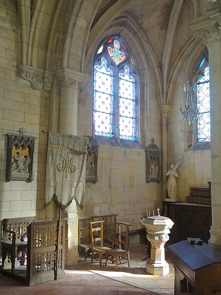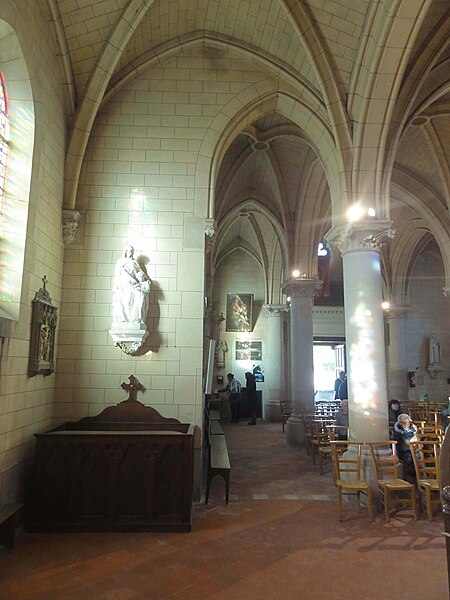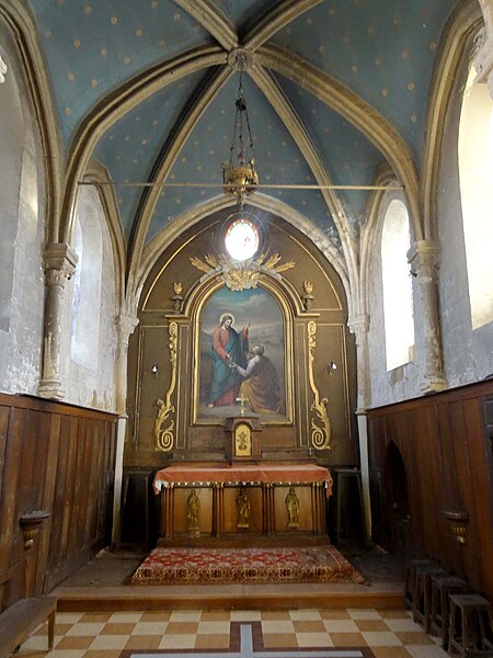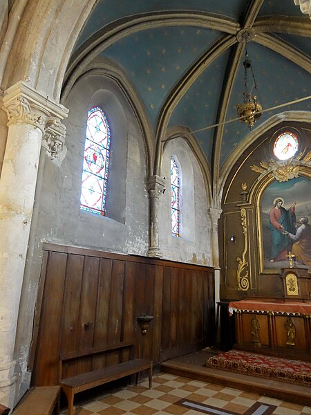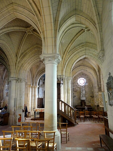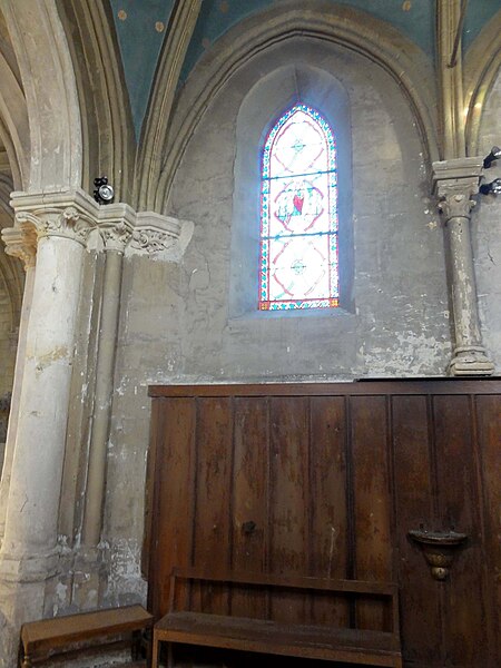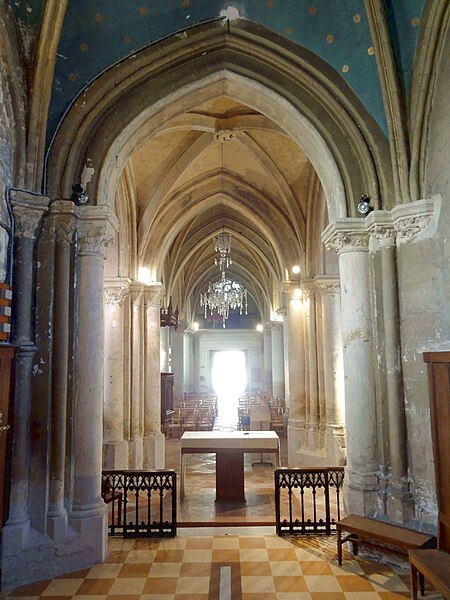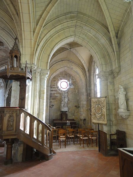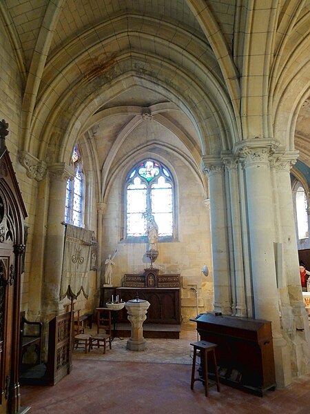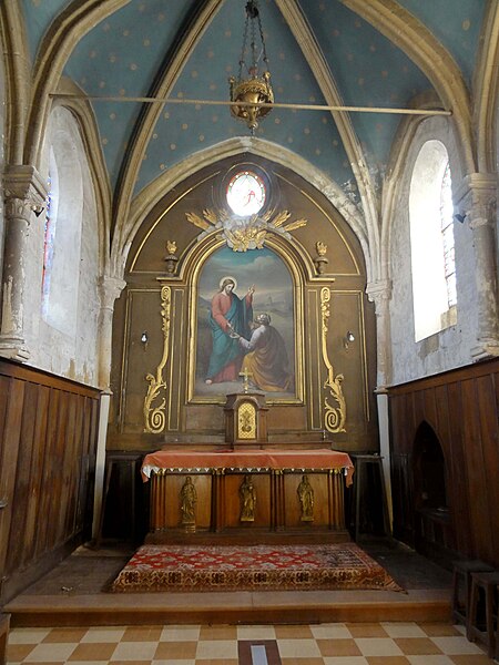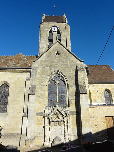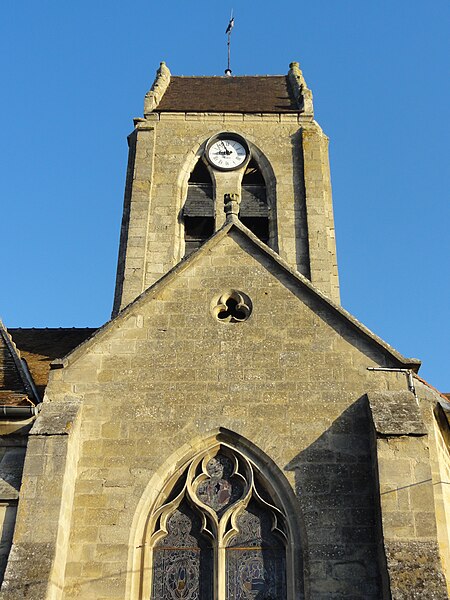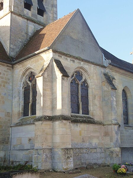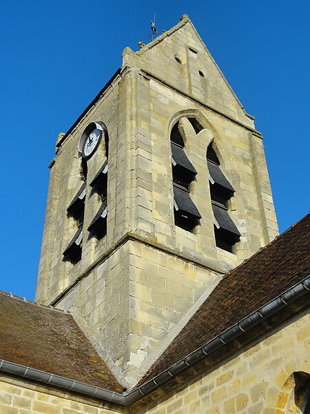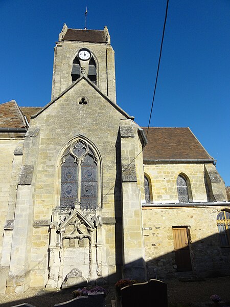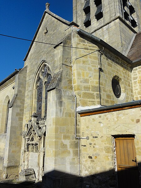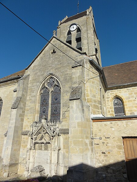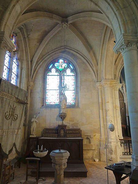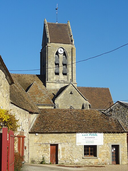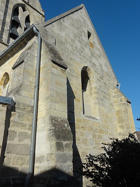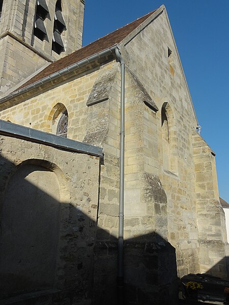 L'église Saint-Pierre est une paroissiale catholique située à Puiseux-Pontoise, dans le Val-d'Oise, au sein de l'agglomération de Cergy-Pontoise. Sa fondation est antérieure au XIIe siècle ; la nef romane, basse et très simple, a subsisté jusqu'en 1895 avant d'être remplacée par une nef néo-gothique, bénite en 1898 grâce à la générosité de la famille Thomassin. La nouvelle nef, conçue par l'architecte Charles Ferrant, imite l'esprit du gothique primitif et s'ouvre largement sur le transept du début du XIIIe siècle, de sorte que l'ensemble ancien et moderne forme un espace presque homogène. La croisée du transept et le croisillon nord ont été revoûtés à la période flamboyante au début du XVIe siècle ; les réseaux des fenêtres des croisillons et le clocher en bâtière datent également de cette campagne. Le clocher, d'une facture simple, est jugé peu remarquable au regard des clochers du Vexin français. La partie la plus ancienne est le petit chœur rectangulaire au chevet plat, qui conserve une voûte sexpartite des environs de 1190-1210, rare pour une église de cette modestie. Le chœur, le transept et le clocher sont inscrits au titre des monuments historiques depuis 1966. L'édifice, régulièrement orienté sur un plan cruciforme, se compose d'un narthex avec tribune, d'une nef de trois travées accompagnée de bas-côtés puis de chapelles, d'un transept dont la croisée porte le clocher, d'un chœur d'une seule travée et d'une sacristie adossée au chevet. L'ensemble est voûté d'ogives : la nef, ses bas-côtés et les chapelles présentent des voûtes récentes avec voûtains en briques et nervures en staff, tandis que le chœur conserve la voûte sexpartite ancienne. Le portail occidental constitue l'unique accès ; la façade, en pierre de taille, mêle éléments gothiques et apports néo-gothiques ou flamboyants visibles dans le portail et la rosace. L'église se situe à l'ouest du village, rue de l'Église, précédée d'un étroit parvis et entourée au sud, à l'est et au nord par le petit cimetière communal ; le presbytère est implanté au nord. À proximité immédiate se trouve une croix de cimetière classée monument historique en 1938 ; son grand socle carré et la base du fût remontent au XIIIe siècle, tandis que le fût et la croix ont été refaits aux XVIIe ou XVIIIe siècles. Selon un acte d'environ l'an 1100, Ite, femme de Foulque de Chaudry et fille de Hermer de Pontoise, donna l'église à l'abbaye Saint-Martin de Pontoise, qui en devint le collateur et possédait un manoir et une grange à Puiseux. Sous la Révolution, l'église fut fermée au culte puis abandonnée ; les paroisses du département de Seine-et-Oise furent regroupées dans le diocèse de Versailles, et la création du diocèse de Pontoise intervint en 1966. Les travaux de 1895-1897, rendus possibles par Louis Thomassin et sa famille, remplacèrent la vieille nef par la construction néo-gothique dont l'abbé Donnio procéda à la bénédiction le 18 janvier 1898. Charles Ferrant s'inspira largement de l'architecture du transept pour ses piliers monocylindriques, bases et chapiteaux, adoptant un vocabulaire de la première période gothique tout en introduisant des détails néo-gothiques dans les bases, les doubleaux et les formerets. La jonction entre les parties médiévales et les élévations néo-gothiques crée un vaste espace intérieur unifié, malgré des proportions modestes et une élévation à un seul niveau au-dessus des grandes arcades. La croisée du transept, édifiée vers les années 1230, conserve des doubleaux à double rouleau, des colonnettes à chapiteaux et des clés de voûte dont l'une porte une décoration héraldique bûchée à la Révolution ; Bernard Duhamel a supposé qu'il s'agissait d'armes locales. Le croisillon sud a presque conservé sa voûte du XIIIe siècle et comporte une niche d'autel voûtée en berceau, éclairée par un oculus, ainsi qu'une petite piscine liturgique ; de telles niches sont rares dans la région. Le croisillon nord, revoûté à la période flamboyante, conserve néanmoins des supports du début du XIIIe siècle ; sa clé de voûte portait un cartouche armorié désormais martelé. Le chœur présente des chapiteaux à décor végétal inspiré de la feuille d'acanthe, une clé de voûte sculptée et un retable baroque occupant toute la paroi du chevet. À l'extérieur, la sacristie réemploie un linteau monolithique roman orné d'un dessin géométrique et d'une rangée de dents de scie, attribué stylistiquement au XIIe siècle. Parmi le mobilier, on remarque un tableau de la Vierge à l'Enfant, copie d'une œuvre d'Antoine van Dyck probablement issue du château de Puiseux démoli en 1818, et une cloche de 1798 baptisée « René », ornée de bas-reliefs et d'une frise de chérubins et d'acanthe. Dans le cimetière, un monument funéraire adossé au transept rassemble les épitaphes des familles Berthelot de Baye et de Girardin et signale la mémoire locale de Brigitte Berthelot de Baye, dernière propriétaire du château de Puiseux. Aujourd'hui Puiseux-en-France est rattaché à la paroisse de Cergy : un prêtre réside au presbytère mais les messes sont célébrées à Saint-Pierre uniquement lors des grandes fêtes religieuses, à 9 h 30.