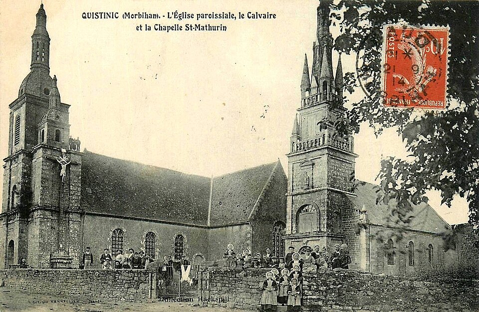 L'église Saint-Pierre est une église catholique située à Quistinic, dans le Morbihan. Elle est associée à la chapelle Saint-Mathurin, liée à la communauté parisienne des Mathurins qui s'est établie à Quistinic au XVIIe siècle et est à l'origine de sa construction. Cette chapelle est au centre d'un pèlerinage et d'un grand pardon qui ont lieu le deuxième dimanche de mai. Les registres paroissiaux signalent qu'un ouragan renversa l'ancienne église paroissiale le 9 janvier 1735. L'actuelle église fut édifiée de 1749 à 1752 pour rendre au bourg une église paroissiale fonctionnelle. La première pierre fut posée le 2 mars 1749, selon ces mêmes registres, et l'édifice fut béni le 13 février 1752, lors de sa dédicace à saint Pierre. L'édifice a été inscrit au titre des monuments historiques en 1928. Le clocher est un massif carré offrant un étage en retrait surmonté d'une flèche en pierre. À l'étage, un balcon à balustres est cantonné aux quatre coins de clochetons amortis en pyramides. À la base de la flèche se trouve un autre balcon à balustres, lui aussi flanqué de quatre clochetons amortis en cônes. La flèche, reconstruite en 1894, est percée de lucarnes coiffées de frontons à sa base et à deux niveaux supérieurs. Une croix monumentale repose sur un socle en forme d'autel du XVIIIe siècle et est surmontée d'une croix de mission en bois du XXe siècle. Le portail de l'enclos porte la date de 1836 et marque l'entrée de l'enclos paroissial.