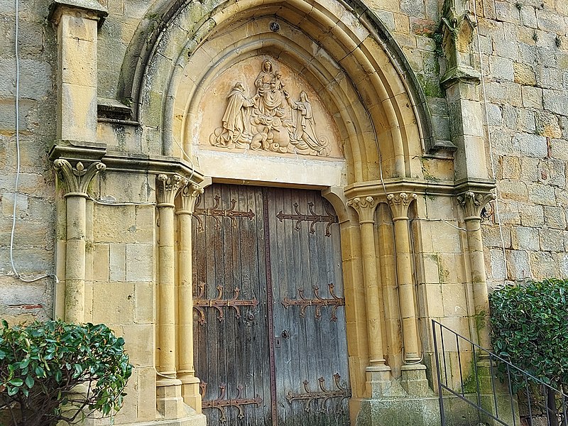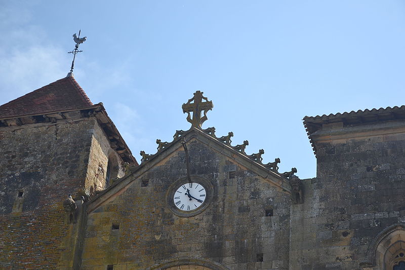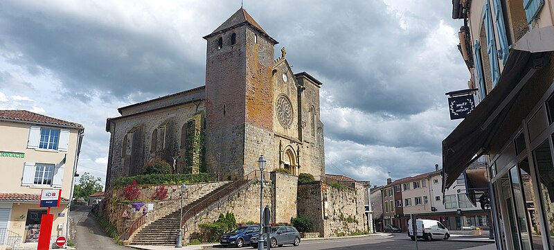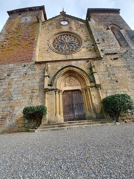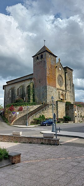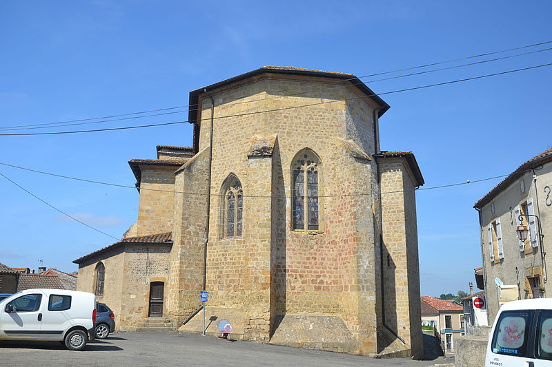L'église Saint-Pierre de Riscle, située sur un plateau de la commune de Riscle dans le Gers, est mentionnée dès le XIe siècle. L'édifice actuel succède à une première construction du XIIIe siècle ; son gros-œuvre semble toutefois relever du XIVe siècle. De 1478 à 1490, d'importants travaux de restauration furent entrepris, et le clocher fut remanié en 1485, ses ouvertures rebouchées sur trois côtés avec briques et mortier. Pendant les guerres de Religion, l'église subit l'incendie des toitures et l'écroulement de certaines voûtes ; en 1572, le chevalier protestant Montgomery tenta de la détruire, mais les habitants l'avaient renforcée et seule la toiture fut endommagée. En 1793, des murs de l'édifice furent démolis ; on observe encore des traces de réparations sous le clocher. Au XIXe siècle, les voûtes furent en partie refaites dans le style des voûtes qui avaient résisté à la destruction du XVIe siècle, et une restauration intérieure menée en 1850 permit d'installer les vitraux actuels. Le monument a été classé au titre des monuments historiques le 25 février 1974. L'architecture présente un chœur polygonal ; le tympan du portail, refait en terre cuite, représente Saint-Dominique recevant le rosaire. Le clocher à base conique évoque l'influence romane, tandis que la façade ouest et l'ogive traduisent l'influence gothique, marquant une transition entre ces deux styles. Au Moyen Âge, l'église avait un rôle défensif : ses murs épais étaient percés de meurtrières et les ouvertures se limitaient aux entrées, à la sacristie et au clocher. Plusieurs objets du mobilier sont référencés dans la base Palissy.