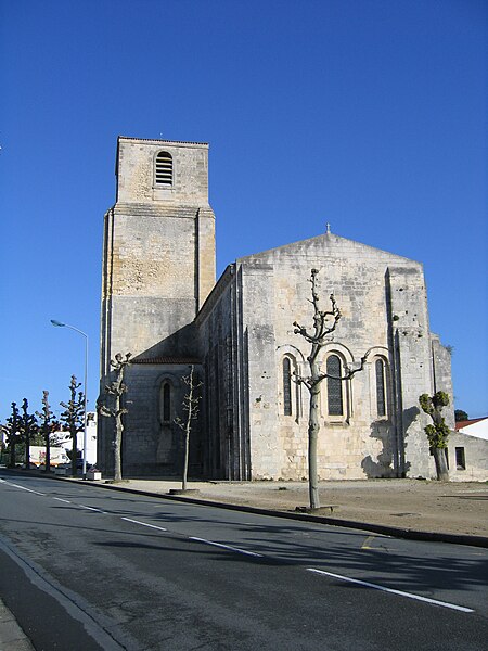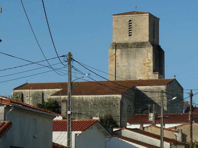 L'église paroissiale Saint-Pierre de Royan, siège d'une des cinq paroisses catholiques de la ville (Charente‑Maritime), est l'ancien noyau religieux de la cité ; elle est inscrite au titre des monuments historiques depuis 1928. Fondée dès le XIe siècle, elle conserve des parties datées du XIIe siècle et des remaniements postérieurs. L'édifice présente une nef unique, un transept et un clocher latéral dont la base est contemporaine de la nef ; la partie supérieure du clocher est moderne. La nef était voûtée en berceau ; on en perçoit encore les amorces. À la croisée du transept, des colonnettes adossées à des pilastres supportaient des arcs doubleaux ; leurs chapiteaux sont décorés de masques et de feuilles d'acanthe, et l'un d'entre eux porte une ornementation inspirée de l'Antiquité romaine. Le chœur actuel occupe l'extrémité d'un espace remanié : l'église primitive s'étendait manifestement au-delà des limites actuelles. Dans l'angle rentrant entre le clocher et la nef se trouve une travée voûtée en berceau brisé qui devait former une absidiole avant le percement de la porte actuelle. Le bras nord‑est du transept a été remanié à la fin du XIIe siècle et divisé en deux travées par des colonnes aux chapiteaux à crochets et à taillons, signes de l'approche du XIIIe siècle ; ces travées furent voûtées au XIIIe siècle sur croisées d'ogives, comme l'attestent les amorces des nervures et les formerets encore visibles. À l'extérieur, quelques corbeaux sculptés marquent l'emplacement d'une corniche aujourd'hui disparue. L'orientation de l'édifice, la disposition des baies de la façade sud‑est et la présence de l'absidiole contre le clocher suggèrent que le sens liturgique a été inversé, le chœur ayant autrefois occupé l'emplacement de la nef actuelle et l'édifice présentant un chevet plat ; cette réorientation paraît liée à la destruction de l'ancienne nef. Le bras sud du transept, bâti sur une crypte servant d'ossuaire, conserve une absidiole rectangulaire et sert de base à un clocher carré de style roman qui fut surhaussé en 1729 par l'ingénieur Barrelier de Bitry afin de servir d'amer. Le bras nord fut encore transformé au XVIe siècle en une chapelle voûtée d'ogives, contrastant avec le reste de l'édifice. Les guerres de Religion entraînèrent l'abattement d'une grande partie de la nef, ainsi que la destruction d'un cloître et d'une partie des bâtiments du prieuré accolés au mur nord ; la nef actuelle ne forme plus qu'une seule travée. Gravement endommagée lors du bombardement de 1945, l'église perdit une partie de ses voûtes ; une campagne de restauration menée lors de la reconstruction de la ville a toutefois permis de préserver l'essentiel. La façade, sobre, date de cette reconstruction et la couverture du clocher a été rétablie en tuiles canal en terre cuite, remplaçant l'état antérieur en ardoise.