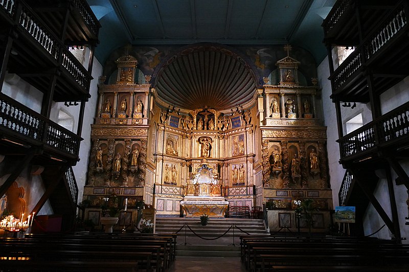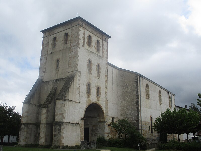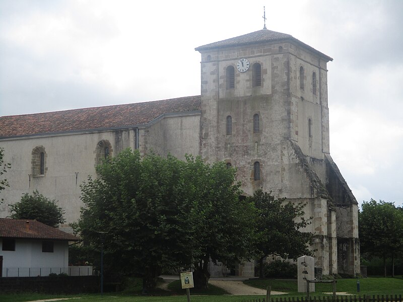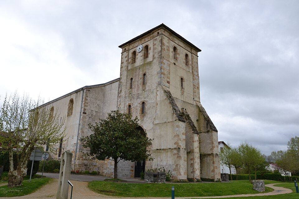 L'église Saint-Pierre est située à Saint-Pée-sur-Nivelle, dans les Pyrénées-Atlantiques ; elle est dédiée à saint Pierre et relève pour le culte du diocèse de Bayonne. Sa construction est attribuée à la fin du XVe ou au XVIe siècle, et elle a fait l'objet de remaniements au début du XVIIe siècle, notamment du clocher et du porche, ainsi que d'aménagements au XVIIIe siècle. L'édifice, de dimensions imposantes (30 m de long, 15 m de large et 15 m de haut), domine le village et présente un clocher-tour comparable à ceux d'Ascain et de Sare, mais renforcé par des contreforts. À l'extérieur on note un cadran solaire, deux gargouilles et un petit cours d'eau qui passe sous l'église. La nef est bordée d'une tribune en bois répartie sur trois niveaux. Les vitraux figurent saint Paul, saint Pierre, saint Marc et saint Luc. L'orgue, construit par Joseph Merklin vers 1886, a été modifié par Hervé de Bonnault en 1977. Le sol conserve 83 dalles funéraires, dont une datée de 1507. Dans le chœur se trouve un grand retable du XVIIIe siècle : au centre une statue de saint Pierre est encadrée par deux bas-reliefs évoquant le coq et les liens, et la Crucifixion occupe le sommet. À gauche du retable se tiennent les statues de saint Jean-Baptiste, de la Vierge à l'Enfant et de saint François d'Assise ; à droite, saint Joseph est entouré de deux autres saints. La voûte du retable, en forme de coquille Saint-Jacques, fait référence aux pèlerins qui passaient par Saint-Pée pour rejoindre Compostelle. L'édifice a été inscrit aux monuments historiques en 2014 puis classé le 9 juin 2015. Une plaque apposée sous le porche commémore Théophile Bonnet M.E.P. (1921-1961), natif de Saint-Pée et martyr à Kontum, dans les plateaux du centre du Viêtnam. Parmi les personnalités liées à la paroisse figurent Théophile Bonnet et Jean Larregain M.E.P. (1888-1942), vicaire apostolique en Chine.