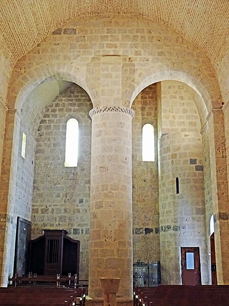 L'église Saint-Pierre de Saint-Pierre-de-Buzet (Lot-et-Garonne) est un édifice roman dont le plan, le parti architectural et les sculptures permettent de la dater du XIIe siècle. Elle paraît avoir appartenu à un ensemble monastique : un prieuré bénédictin Saint-Pierre, dépendant de Saint-Sever et attesté dès le Xe siècle, est mentionné par les sources, et la proximité de la Grange Notre-Dame-de-Fonclaire, couvent de Prémontrés situé à un kilomètre, souligne son lien avec la vie religieuse locale. L'architecture se caractérise par une nef unique en quatre travées séparées par trois dosserets plats et larges qui portent les arcs-doubleaux ; la première travée se distingue par une grosse pile ronde sans chapiteau, munie d'un simple tailloir ornée de trois rangs de billettes recevant deux arcs. Le chœur, étroit et profond, se termine par une abside semicirculaire voûtée en cul-de-four et est séparé de la nef par un arc triomphal doublé et deux colonnes à chapiteaux figurant des lions au sud et des oiseaux au nord. L'élévation du chœur est traitée en deux niveaux par un bandeau à double rang de grosses billettes : en bas, une arcature de huit arcs en plein cintre soutenus par des colonnes adossées et surmontées de chapiteaux ; en haut, cinq baies éclairent l'abside. L'édifice conserve des colonnettes aux chapiteaux sculptés, des marques de tâcheron gravées sur certaines pierres et un chrisme sculpté au-dessus du portail sud. Le clocher, massif et d'allure fortifiée, présente un plan proche du carré, la superstructure actuelle portant les cloches étant d'une campagne postérieure ; sous le clocher se trouve un imposant pilier rond. Les voûtes ont été refaites au cours des siècles, celles de la nef ayant été surbaissées, et quelques aménagements supérieurs du massif occidental semblent avoir été modifiés peut-être au XIVe siècle, avec la création d'un clocher-mur et la protection de la porte nord par une bretèche. Une tour donjon, sans doute appuyée sur la grosse pile de la nef, a probablement disparu au cours des guerres qui ont affecté la région, comme la guerre de Cent Ans ou les guerres de religion. Des restaurations successives ont transformé l'intérieur : remplacement du pavage en pierres par des carreaux en terre cuite au XIXe siècle, recouvrement des parements par un enduit de plâtre au début du XXe siècle, puis retrait de cet enduit et nettoyage des pierres en 1982 sous la conduite du docteur Chapeyrou, qui a permis la redécouverte d'une litre funéraire peinte et de fragments de peinture murale. Le maître-autel, réalisé en 1705 par un « esculpteur de Toulouse » pour la Grange de Fonclaire, transféré à Saint-Pierre-de-Buzet pendant la Révolution et attribué à la fabrique Virebent de Toulouse d'après la base Palissy, figure parmi les éléments mobiliers et doit faire l'objet d'une restauration par le service des monuments historiques. L'église Saint-Pierre est inscrite au titre des monuments historiques.