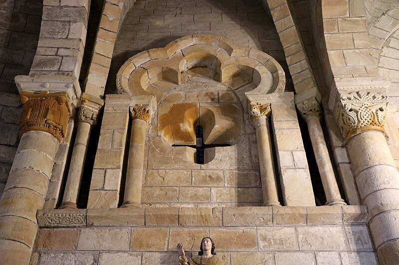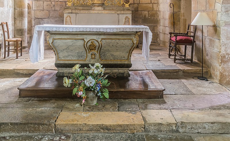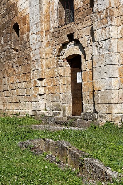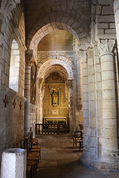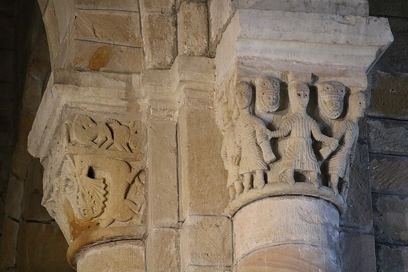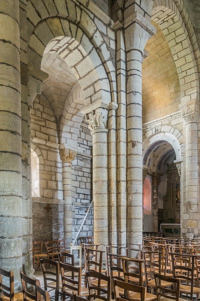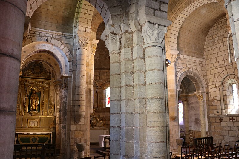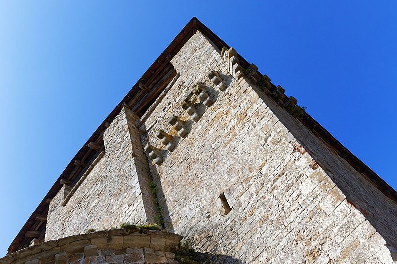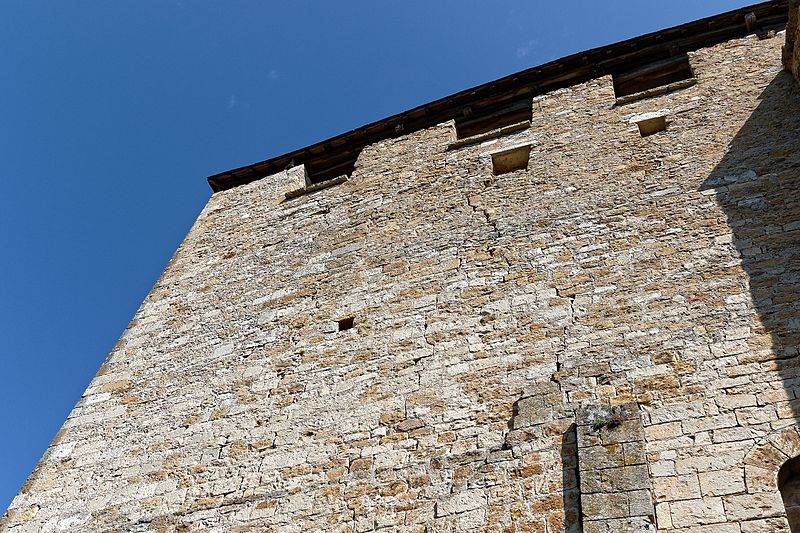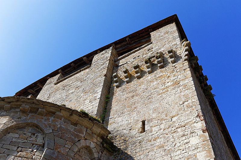 L'église Saint-Pierre de Saint-Pierre-Toirac, située dans le Lot, présente les caractéristiques d'un édifice mêlant fonctions religieuses et défensives : ses murs extérieurs, de plan presque carré, sont surmontés de créneaux qui devaient autrefois ceindre les quatre faces. La tradition attribue la donation de l'église et des terres voisines à l'abbaye Saint-Sauveur de Figeac par l'évêque de Rodez en 889 ; cette appartenance est confirmée par le pape en 1146, mais les sources ne mentionnent pas de communauté bénédictine, seulement un prieuré dont le curé était nommé par l'abbé de Figeac. La construction de l'édifice, datée entre 1189 et 1200, associe deux matériaux distincts — le grès pour le chevet et le calcaire pour la nef et les collatéraux —, utilisés simultanément selon l'analyse de la maçonnerie menée en 2009 par Anaïs Charrier, qui conclut à un projet unique réalisé probablement par deux équipes. Les élévations du chœur ont un décor de triforium et de colonnettes ornées de personnages, tandis que la nef présente des arcs marquant l'amorce d'ogives et une croisée d'ogives de gothique primitif ; les chapiteaux, mêlant entrelacs et palmettes d'inspiration ancienne, témoignent d'un mélange de styles. La nef possédait deux portails, au sud et au nord, et un tympan roman réutilisé figure aujourd'hui sur l'élévation nord du porche occidental. Des interventions sont attestées à la fin du XIIIe ou au début du XIVe siècle par une première surélévation au-dessus de l'absidiole sud et des collatéraux, puis par des travaux signalés dans un acte notarié de 1490. Un prix-fait du 17 juin 1513 confie à deux charpentiers de Figeac la découverte de l'église, l'élévation des côtés jusqu'à la hauteur du clocher et de la façade ouest, la réalisation de créneaux tout autour et la couverture par une toiture à quatre pans, travaux devant être achevés pour la Saint-Jean-Baptiste; le document précise également que, en temps de guerre, les habitants voisins pouvaient se placer sous la protection de la fortalice de l'église. Le porche occidental a été construit en 1827 et un tympan roman représentant Samson chevauchant un lion y a été réemployé. Une nécropole médiévale a été mise au jour sur le flanc sud en 1985. L'édifice est classé au titre des monuments historiques depuis le 16 février 1903.