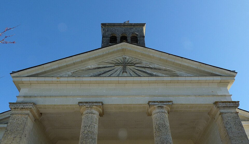 L'église Saint-Pierre est une église catholique paroissiale située à Vaudelnay, dans le département de Maine‑et‑Loire. Elle a été bâtie par Antoine Calderon, les sources mentionnant 1826 ou 1827. L'édifice répond au programme communal qui prévoyait trois nefs voûtées, un porche et un clocher en façade, et il s'inspire des prescriptions de Vitruve et Palladio. Le porche présente un fronton triangulaire et un péristyle. C'est un exemple rare du néo‑classicisme naissant en Anjou. L'église a été inscrite au titre des monuments historiques en 2007. Des références et ressources en ligne existent pour compléter ces informations, notamment Clochers de France, l'Observatoire du patrimoine religieux, la base Mérimée et les portails consacrés aux monuments historiques et à l'architecture chrétienne.