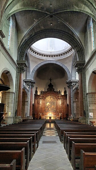L'église Saint-Pierre-des-Minimes, dite Sant Pèire de Jauda en occitan, se situe à Clermont-Ferrand et son entrée orientale donne sur la place de Jaude. Construite au XVIIe siècle pour le couvent des Minimes, elle adopte un style classique caractéristique des ordres religieux de cette époque et devint, après la Révolution, une église paroissiale. Jugée trop petite, elle fut agrandie au XIXe siècle par l'architecte Jean Teillard, qui conçut ses adjonctions dans l'esprit du XVIIe siècle. L'édifice comprend une nef de quatre travées flanquée de chapelles latérales, un transept saillant soutenant une tour-lanterne coiffée d'un dôme au niveau de la croisée, ainsi qu'une abside semi-circulaire. Le chevet plat intègre, au nord, un porche secondaire inséré dans une élévation droite sur rue et, au sud, la sacristie. À l'intérieur, les chapiteaux composites sont l'œuvre de Henri Gourgouillon, et l'abside est ornée du retable provenant de l'église des Cordeliers. L'église est inscrite au titre des monuments historiques depuis le 30 octobre 1987.