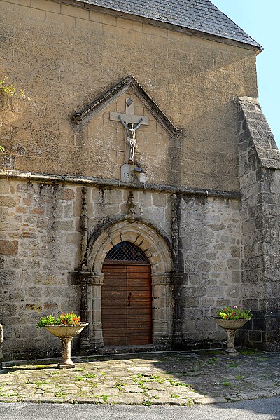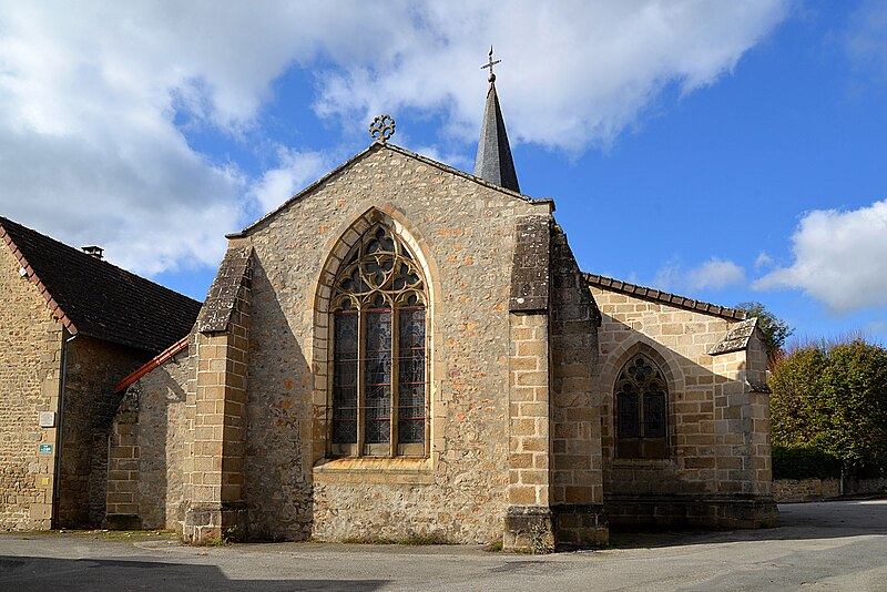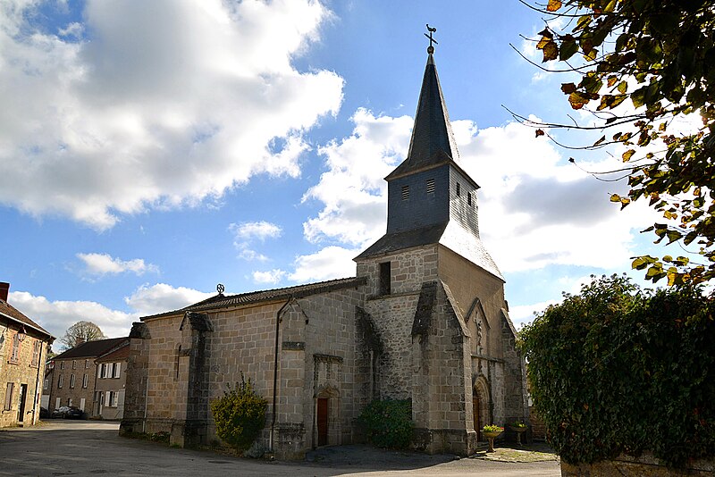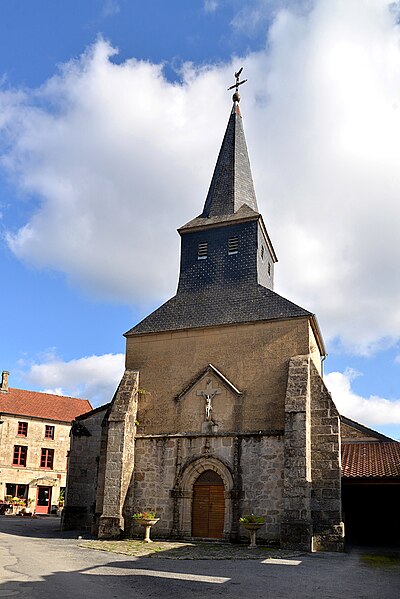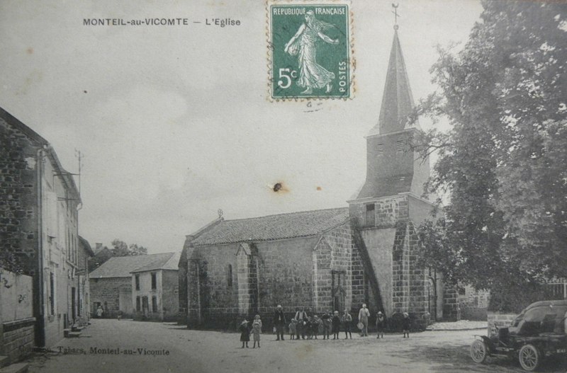 L'église Saint-Pierre, située au Monteil-au-Vicomte dans la Creuse, présente des éléments architecturaux médiévaux et des aménagements postérieurs. Le chevet est percé d'une fenêtre à nervures. La chapelle nord comprend deux travées voûtées à nervures, soutenues par des culs-de-lampe sculptés en bustes humains. L'une des clés de voûte est ornée d'une croix de Malte, l'autre porte l'écusson du commandeur de Malte de la famille d'Aubusson. La porte d'entrée de la nef se distingue par un riche décor où se mêlent des ornements de la dernière période gothique et des motifs de style Renaissance. L'édifice remonte aux XIIIe ou XIVe siècles et a été reconstruit et agrandi aux XVe et XVIe siècles. Les chapelles latérales ont été édifiées au XVe siècle par Antoine d'Aubusson et son frère Pierre d'Aubusson, ce dernier, grand maître de l'ordre de Saint‑Jean de Jérusalem, ayant fait construire la chapelle nord entre 1476 et 1503. Des travaux de réfection ont été réalisés au XIXe siècle, la date 1895 figurant au‑dessus du portail ouest. L'église est inscrite au titre des monuments historiques par arrêté du 1er mai 1933. Bibliographie citée : Jean-Bernard de Vaivre, « Autour de Pierre d’Aubusson. Les chapelles d’Aubusson au Monteil », Bulletin de la société nationale des Antiquaires de France, 2015, p. 302‑317.