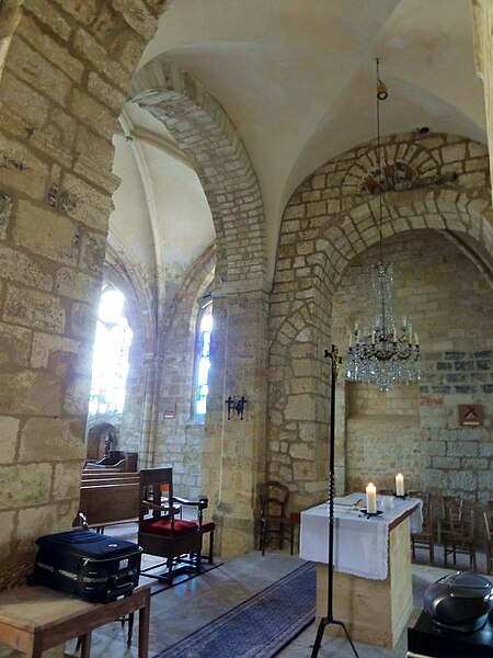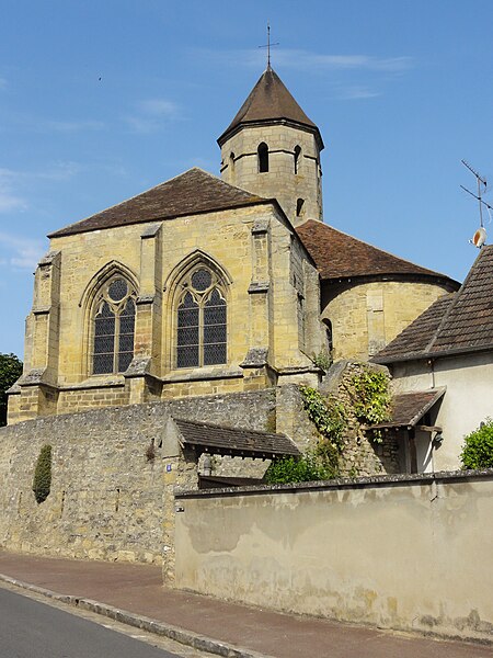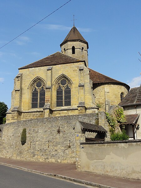 L'église Saint-Pierre-ès-Liens est une église catholique paroissiale située à Condécourt (Val-d'Oise), inscrite au titre des monuments historiques par arrêté du 6 juillet 1925 et rattachée aujourd'hui à la paroisse Avernes et Marines, où les messes dominicales ne sont célébrées que deux ou trois fois par an. Son architecture simple, à un seul niveau d'élévation, résulte de la juxtaposition de quatre espaces carrés issus de campagnes de construction distinctes : la base du clocher (fin du XIe siècle), le premier étage octogonal de style roman archaïque (début du XIIe siècle), le chœur gothique (second quart du XIIIe siècle) et une nef rustique datée du XVIIIe siècle, tandis que le second étage du clocher a été ajouté à la période gothique. La base du clocher, englobée aujourd'hui dans des constructions postérieures, conserve des arcades en plein cintre retombant sur des impostes ornées de dents-de-scie et une voûte d'arêtes caractéristique du roman primitif. Le premier étage octogonal présente des baies flanquées de colonnettes à chapiteaux, certaines torsadées et octogonales, et le second étage, plus sobre, est percé de baies en arc brisé entourées d'un tore et coiffé d'une corniche moulurée. La chapelle de la Vierge, au nord du clocher, se termine par une abside en hémicycle dont la corniche, les contreforts et les fenêtres évoquent le tout début du gothique, tandis que les chapiteaux et les clés de voûte renvoient au début du XIIIe siècle, ce qui suggère une interruption du chantier ; sa voûte à trois branches d'ogives constitue une particularité. Située au centre du village, place de l'Église, dans le Parc naturel régional du Vexin français, l'église est entourée de l'ancien cimetière aujourd'hui converti en pelouse bordée d'arbres et domine les rues voisines depuis un haut mur de soutènement ; on y accède de plain-pied par la rue de Chaumont à l'ouest ou par un escalier au sud, et la RD 169 longe le chevet. Selon l'abbé Vital Jean Gautier, Condécourt aurait été érigé en paroisse au XIIe siècle et l'église porte pour patron saint Pierre ; sous l'Ancien Régime la paroisse relevait du doyenné de Meulan, de l'archidiaconé du Vexin français et de l'archidiocèse de Rouen, les collateurs de la cure étant alternativement les abbés du Bec et de Coulombs. La vieille nef romane a été démolie et remplacée, plus de cinq siècles après, par une grande salle carrée dont l'extérieur affiche un caractère néoclassique sobre tandis que l'intérieur demeure rustique ; l'utilisation de pierres de même teinte contribue à une certaine harmonie entre les parties très diverses de l'édifice. Extérieurement, la nef du XVIIIe siècle présente des murs enduits en moellons, des chaînages d'angle en pierre de taille imitant des pilastres avec bases et chapiteaux doriques simplifiés, un entablement continu et un portail occidental en plein cintre dont le tympan ajouré sert de fenêtre ; la façade sud comporte deux fenêtres en plein cintre encadrant une petite porte rectangulaire et le mur gouttereau nord est aveugle. Le clocher, installé au-dessus de la croisée, offre un plan octogonal rare dans la région et se distingue par la sobriété de son élévation, l'absence de colonnettes d'angle au premier étage et la variété des ornements des baies et des impostes, dont nombre sont aujourd'hui abîmés ou bouchés lors d'aménagements ultérieurs. À l'intérieur, l'église adopte un plan irrégulier légèrement dévié vers le sud-est : une nef carrée sans bas-côtés ouvre à l'est sur la base du clocher et une étroite travée qui communique avec le chœur, tandis que la sacristie occupe l'angle entre la nef et la chapelle ; l'on entre par le portail occidental ou par le portail latéral sud. La nef est une salle moyenne, lumineuse grâce à du verre blanc et dépourvue d'enduit sur les murs, avec un plafond en bois reposant sur solives et chevêtres et un sol pavé de tomettes ; la base du clocher, voûtée d'arêtes, abrite aujourd'hui le chœur liturgique et les arcades à double rouleau retombent sur des impostes décorées de dents-de-scie sans colonnettes. Le chœur, également approximativement carré, est couvert par deux voûtes qui reposent sur faisceaux de trois fines colonnettes à chapiteaux dont les corbeilles sont sculptées de crochets caractéristiques du second quart du XIIIe siècle ; les clés de voûte, percées et ornées de feuilles en bas-relief, témoignent d'une décoration sobre et les enduits conservent des traces de polychromie ancienne, notamment le bandeau noir d'une litre seigneuriale. L'intérieur de la chapelle de la Vierge, plus résolument gothique, associe arcs en plein cintre et arcs brisés : les nervures des voûtes sont reçues sur faisceaux de colonnettes, la première travée présente des faisceaux plus puissants et l'abside en hémicycle, à deux pans, est couverte par trois voûtains triangulaires et trois branches d'ogives ; les clés de voûte en rosace à feuillages dites « tournantes » renvoient à l'usage apparu au début du XIIIe siècle, et la modénature des chapiteaux et tailloirs situe le voûtement au premier quart du XIIIe siècle. Le mobilier est peu abondant et peu classé : deux cloches en bronze datées de 1507 et 1542 sont inscrites au titre des objets, tandis que l'église conserve notamment deux stalles individuelles dans le chœur, un grand cadre provenant d'un retable démantelé, un tabernacle à ailes de style rocaille orné de bas-reliefs et son dais, ainsi que deux petites statues en bois représentant des anges adorateurs attribuées probablement au XVIIIe siècle.