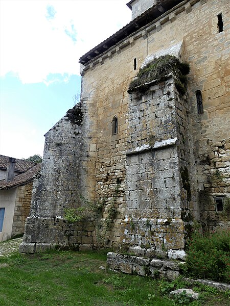 L'édifice est un exemple d'église périgourdine à coupoles et à nef unique. Il comprend trois travées couvertes de coupoles sur pendentifs et un sanctuaire voûté en berceau. La travée précédant le chœur a été élargie par deux grands formerets, marquant l'amorce d'un transept. La façade ouest s'ouvre par un portail à multiples archivoltes qui retombaient sur des colonnettes monolithes aujourd'hui disparues. Comme dans la plupart des églises de cette époque, les combles ont été surélevés pour servir de refuge en temps de trouble, et des échauguettes à mâchicoulis ont été aménagées aux angles, témoignant d'une préoccupation défensive. Le clocher carré qui s'élève sur la dernière travée en avant du chœur est de construction moderne et a sans doute remplacé un clocher antérieur.