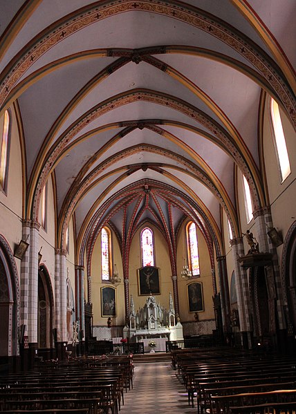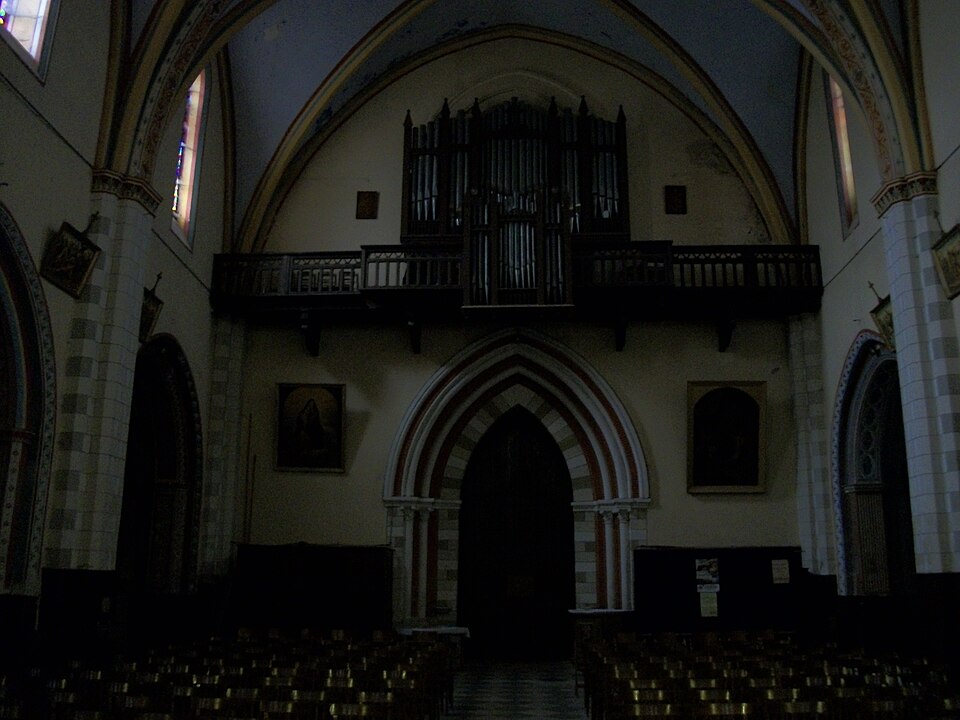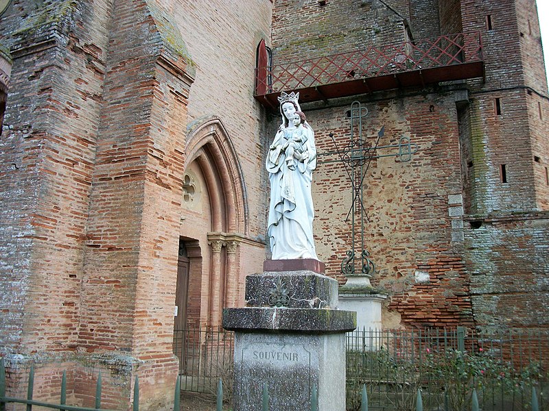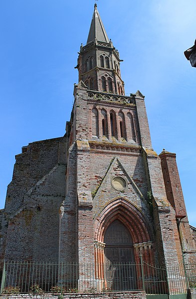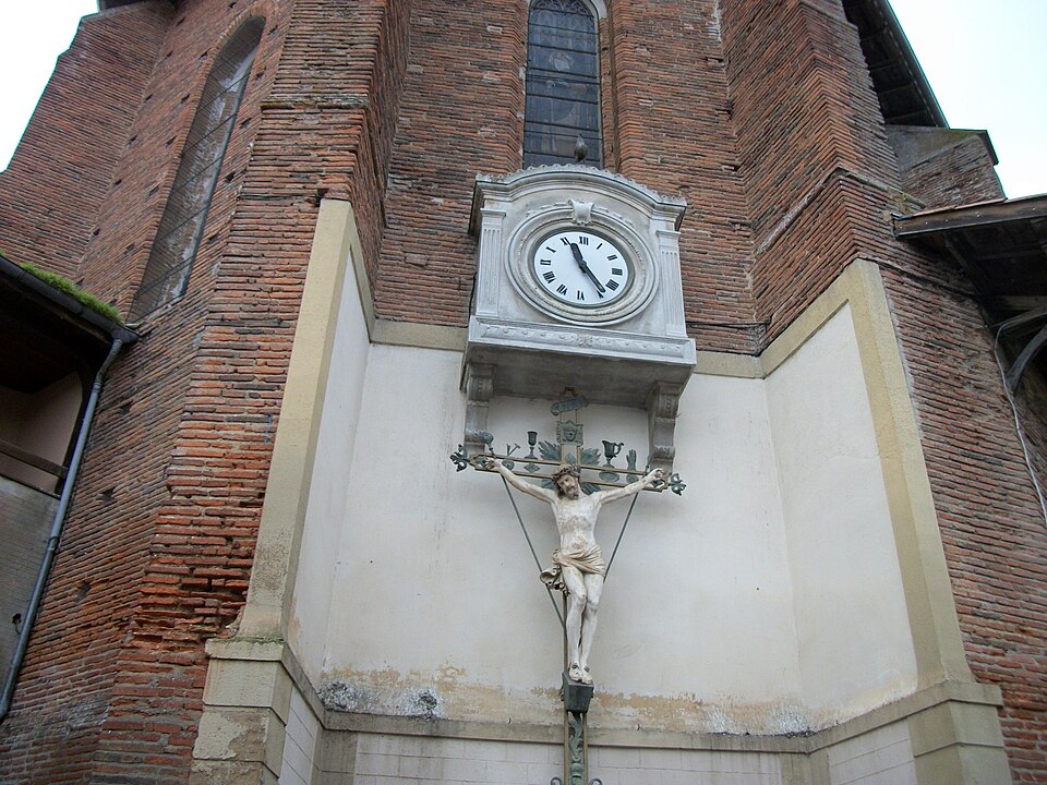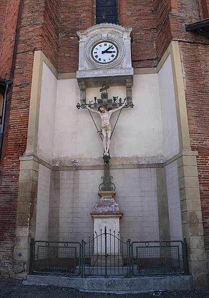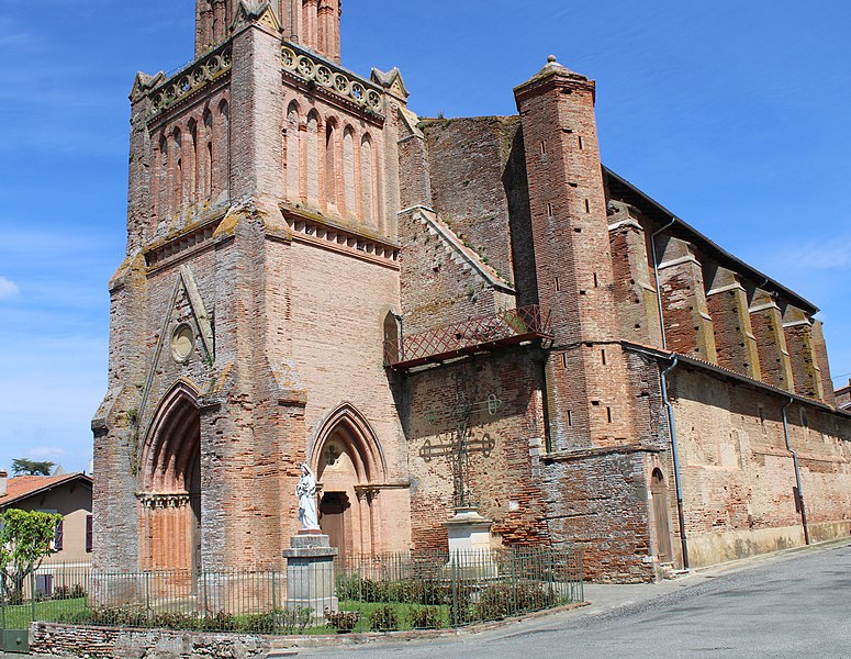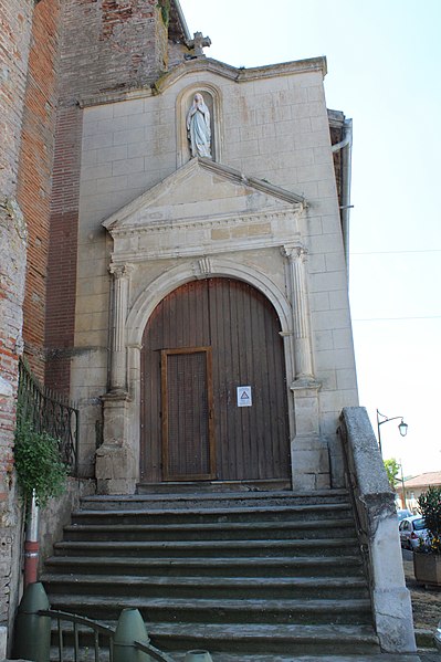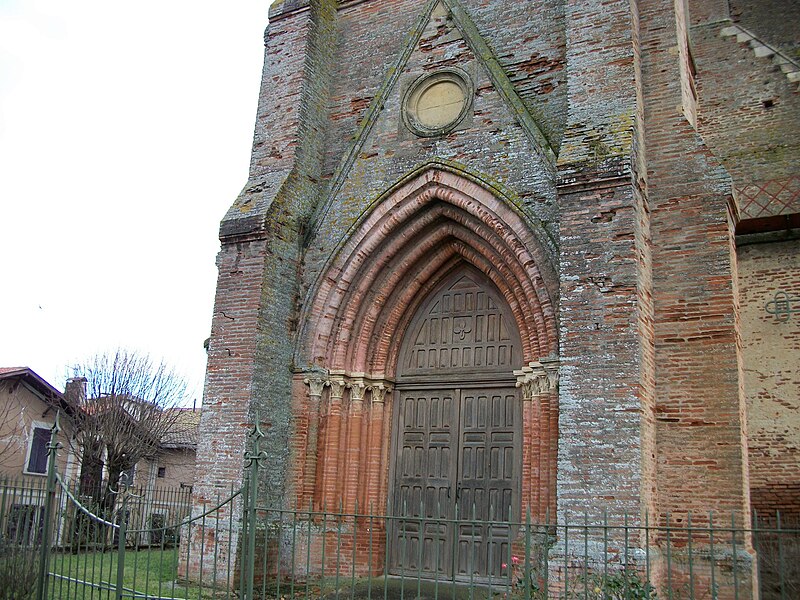 Sur la façade nord extérieure, un linteau en pierre de réemploi à décor végétal, daté du XIVe siècle et étudié par des archéologues, pourrait provenir d'un édifice antérieur (table d'autel ou linteau roman) ; il porte deux registres de frise végétale composés de tiges ondulées, palmettes et fruits. L'orgue a été construit en 1947 par le facteur Maurice Puget et inauguré en 1949 par le cardinal Saliège.