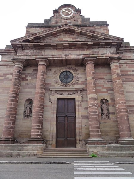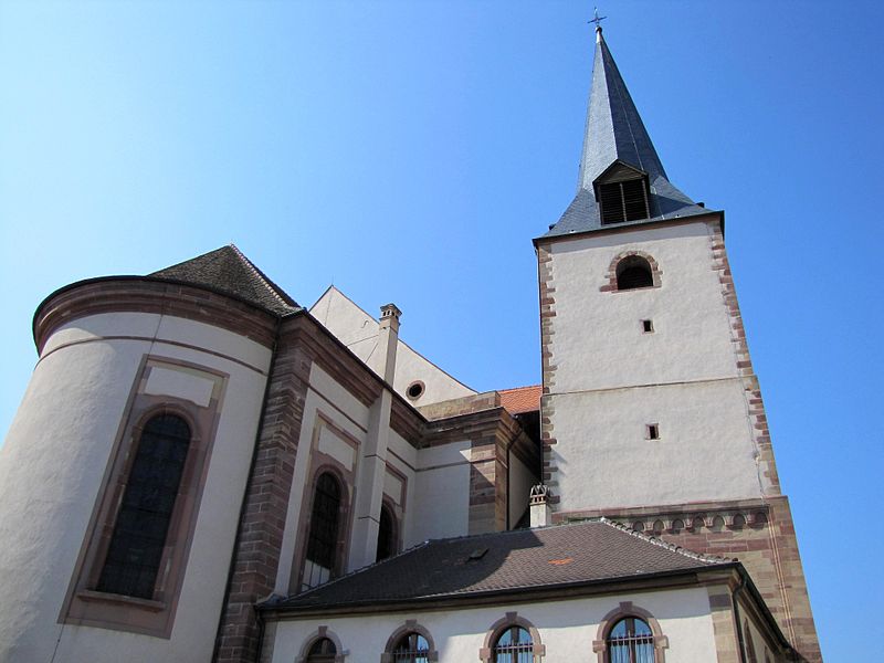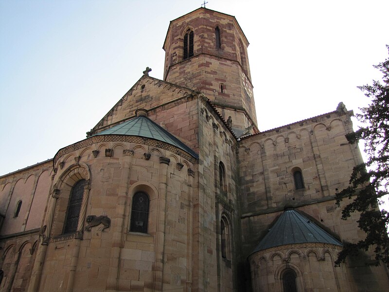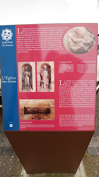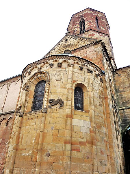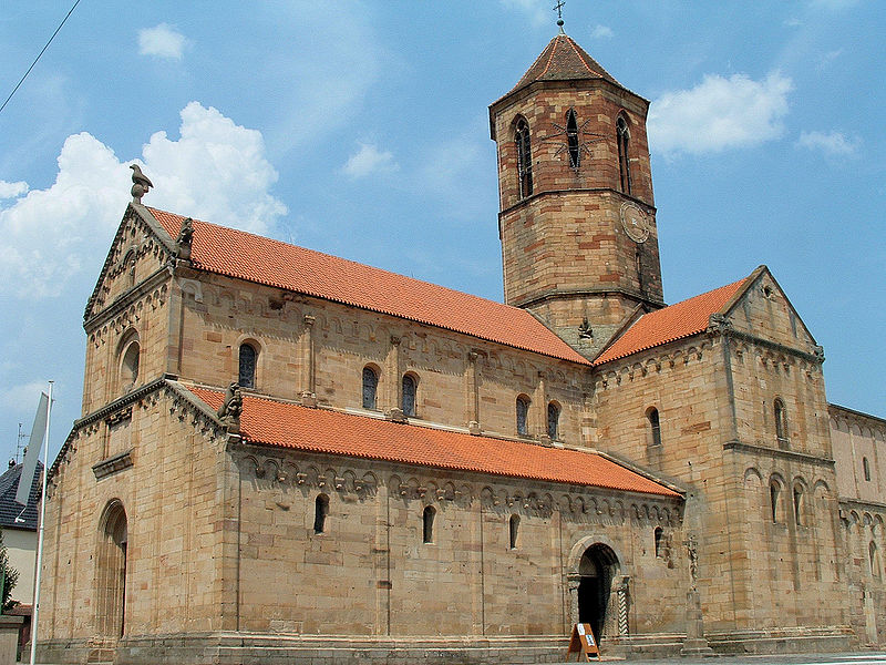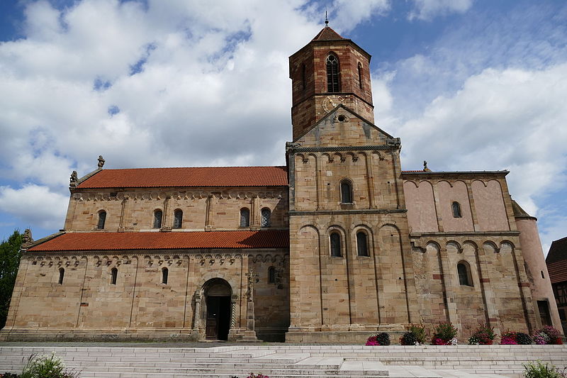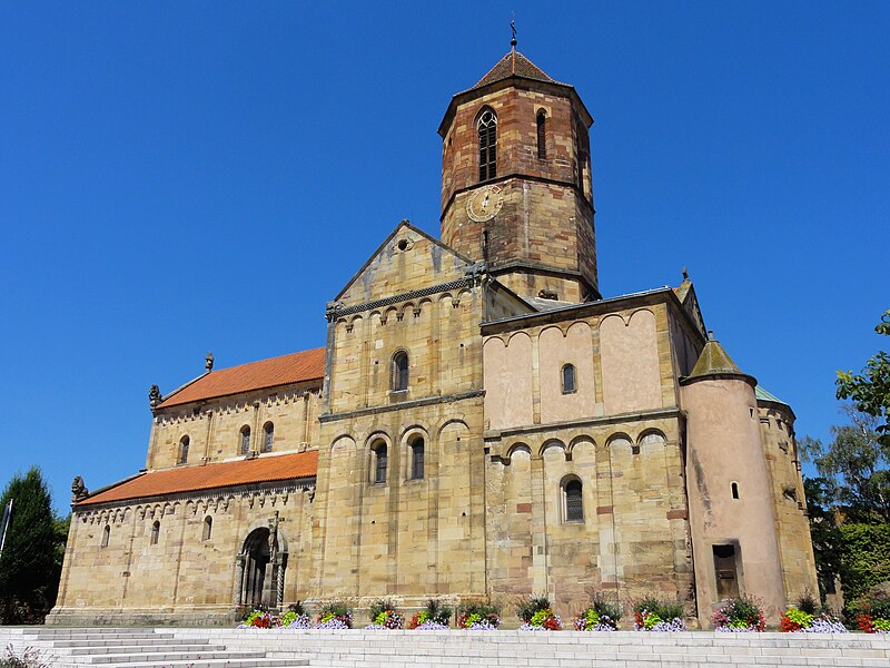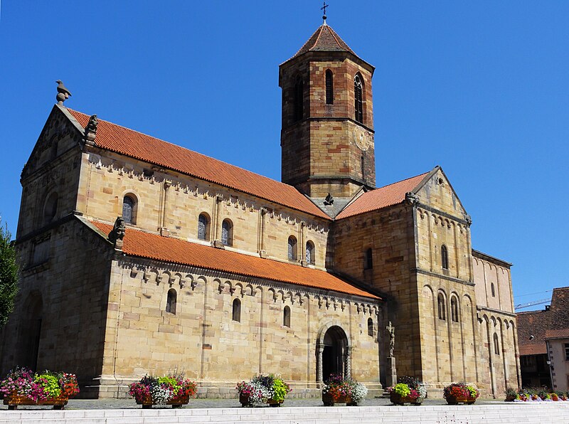 L'église paroissiale Saints-Pierre-et-Paul, située à Rosheim dans le Bas-Rhin, est un édifice roman majeur de la route romane d'Alsace du Nord et fait l'objet d'un classement au titre des monuments historiques depuis 1840. La paroisse est mentionnée dès 1050, comme dépendant de l'abbaye de Hesse en Lorraine ; rien ne permet de connaître l'église primitive. Après l'incendie de la ville en 1132, il ne subsiste que l'ancienne tour qui servait de chœur. Les travaux de l'église actuelle se déroulent au milieu du XIIe siècle : les études placent sa construction entre 1140 et 1190, en trois campagnes successives, probablement avec l'appui des Hohenstaufen, empereurs et seigneurs de Rosheim. Un document de 1286 signale l'achèvement de la tour de croisée, dont la croisée du transept et le clocher sont ensuite rehaussés dans un style gothique. À la suite d'un incendie en 1385, la tour est relevée. Vers le milieu du XVe siècle, une sacristie est ajoutée contre l'absidiole nord ; un linteau daté de 1454 sera réutilisé après la démolition intervenue en 1860. La porte d'entrée de la tourelle d'escalier porte la date de 1712. Deux campagnes de restauration importantes ont été menées entre 1859 et 1864, puis en 1968. Une petite chapelle au nord de l'église a été édifiée entre 1829 et 1842. L'édifice, construit en grès rose et jaune autour du milieu du XIIe siècle, conserve une abside particulièrement richement décorée, tandis que plusieurs sculptures ont été abattues ou endommagées lors de la Révolution française. L'intérieur, de dimensions modestes, se distingue par l'harmonie de ses proportions et par le contraste volontaire entre larges assises et pierres plus étroites des murs. L'ornementation principale se concentre sur les chapiteaux sculptés, dont le célèbre "chapiteau à têtes" qui réunit vingt et une figures humaines. L'orgue de 1733, signé André Silbermann, figure parmi les éléments remarquables du mobilier. Parmi les sculptures et sculptures architecturales du site figurent notamment un acrotère du XIIe siècle dit "Chevalier et dragon", des figures de mendiant et de monstre surmontant un homme, ainsi que les décors du chevet roman et le portail sud.