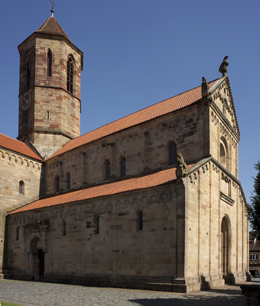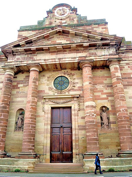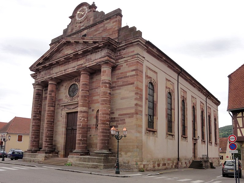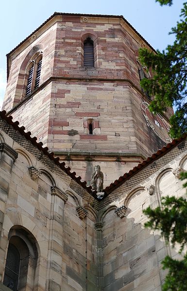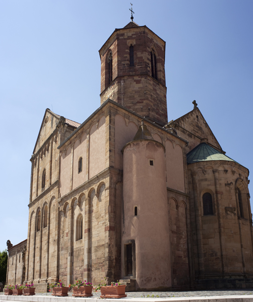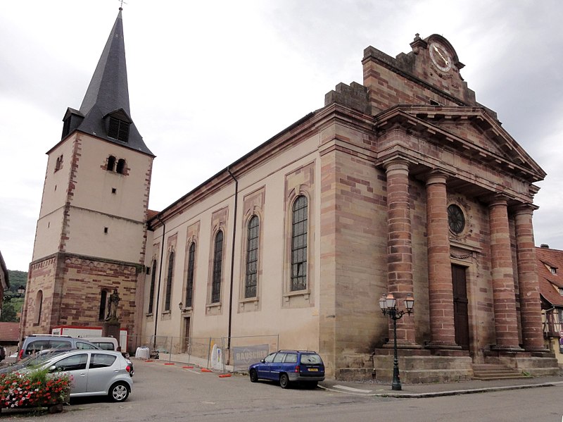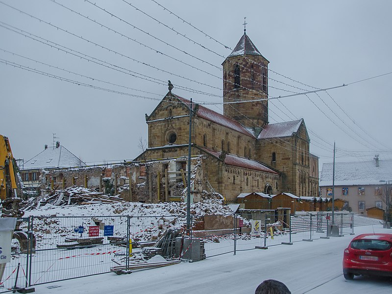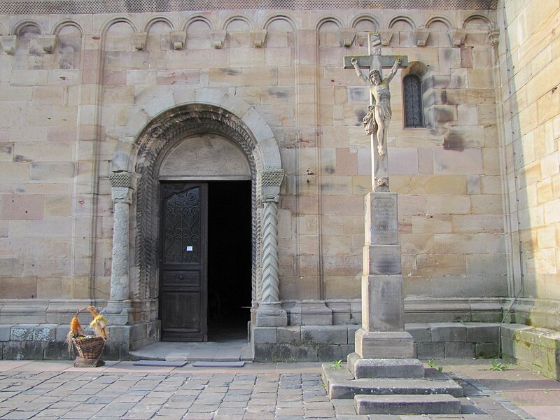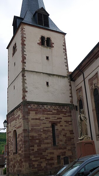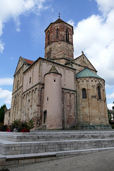L'église paroissiale Saints-Pierre-et-Paul, située à Rosheim dans le Bas-Rhin, est un édifice roman majeur de la route romane d'Alsace du Nord et fait l'objet d'un classement au titre des monuments historiques depuis 1840. La paroisse est mentionnée dès 1050, comme dépendant de l'abbaye de Hesse en Lorraine ; rien ne permet de connaître l'église primitive. Après l'incendie de la ville en 1132, il ne subsiste que l'ancienne tour qui servait de chœur. Les travaux de l'église actuelle se déroulent au milieu du XIIe siècle : les études placent sa construction entre 1140 et 1190, en trois campagnes successives, probablement avec l'appui des Hohenstaufen, empereurs et seigneurs de Rosheim. Un document de 1286 signale l'achèvement de la tour de croisée, dont la croisée du transept et le clocher sont ensuite rehaussés dans un style gothique. À la suite d'un incendie en 1385, la tour est relevée. Vers le milieu du XVe siècle, une sacristie est ajoutée contre l'absidiole nord ; un linteau daté de 1454 sera réutilisé après la démolition intervenue en 1860. La porte d'entrée de la tourelle d'escalier porte la date de 1712. Deux campagnes de restauration importantes ont été menées entre 1859 et 1864, puis en 1968. Une petite chapelle au nord de l'église a été édifiée entre 1829 et 1842. L'édifice, construit en grès rose et jaune autour du milieu du XIIe siècle, conserve une abside particulièrement richement décorée, tandis que plusieurs sculptures ont été abattues ou endommagées lors de la Révolution française. L'intérieur, de dimensions modestes, se distingue par l'harmonie de ses proportions et par le contraste volontaire entre larges assises et pierres plus étroites des murs. L'ornementation principale se concentre sur les chapiteaux sculptés, dont le célèbre "chapiteau à têtes" qui réunit vingt et une figures humaines. L'orgue de 1733, signé André Silbermann, figure parmi les éléments remarquables du mobilier. Parmi les sculptures et sculptures architecturales du site figurent notamment un acrotère du XIIe siècle dit "Chevalier et dragon", des figures de mendiant et de monstre surmontant un homme, ainsi que les décors du chevet roman et le portail sud.