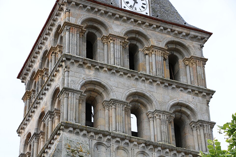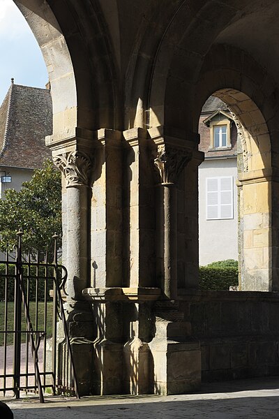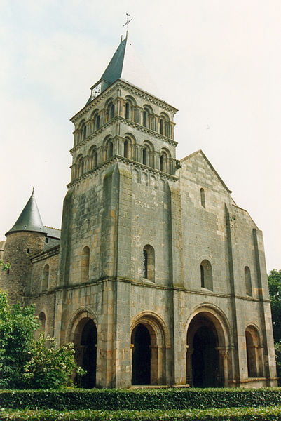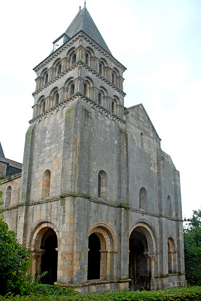 L'édifice, exemple d'architecture religieuse des XIe et XIIe siècles, a connu plusieurs interventions : vers 1095 le croisillon nord du transept fut voûté ou re‑voûté en voûte d'arêtes et renforcé par des contreforts intérieurs ronds et des contreforts extérieurs aux angles ; vers 1120 la nef fut allongée et une avant-nef neuve, en grande partie en pierre de taille de fort appareil et à deux niveaux décorés, fut érigée et surmontée d'une tour-beffroi à deux niveaux ; au XVe siècle le chœur fut reconstruit en pierre de taille avec de grandes baies en lancette à remplages, et le cloître adossé au bas-côté sud fut remplacé par un cloître voûté d'ogives dont seuls les culs-de-lampe subsistent. Le mur nord de la nef a par ailleurs été presque entièrement reconstruit à une date indéterminée de l'époque gothique sur l'emprise de la grande arcade nord disparue, avec la quasi‑disparition du bas-côté nord.