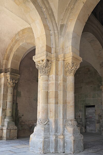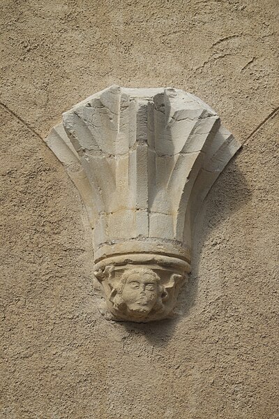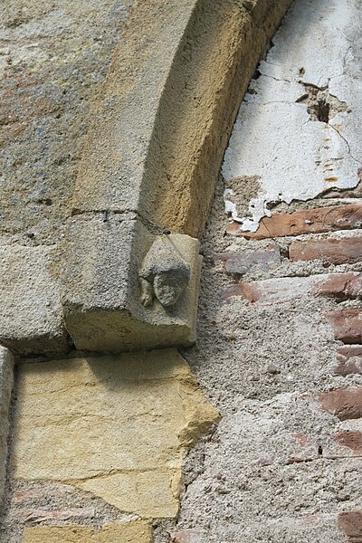 La sculpture est presque inexistante : seuls les chapiteaux des baies géminées formant claire-voie intérieure au‑dessus des grands arcs de la croisée subsistent, et des impostes moulurées, qui servaient d'appui aux cintres, animent la nudité des murs dépourvus de lésènes et de bandeaux. Cette muralité paraît avoir été conçue pour recevoir des peintures ; une prospection reste à faire.