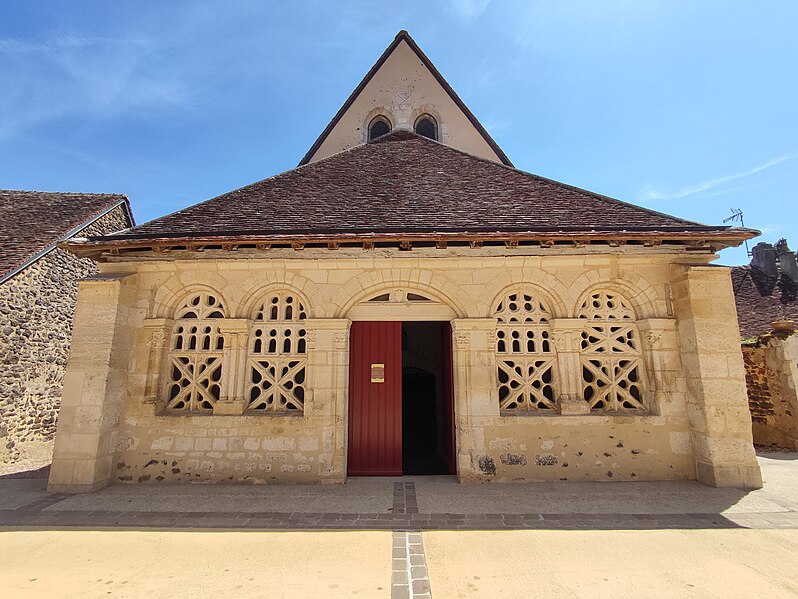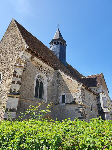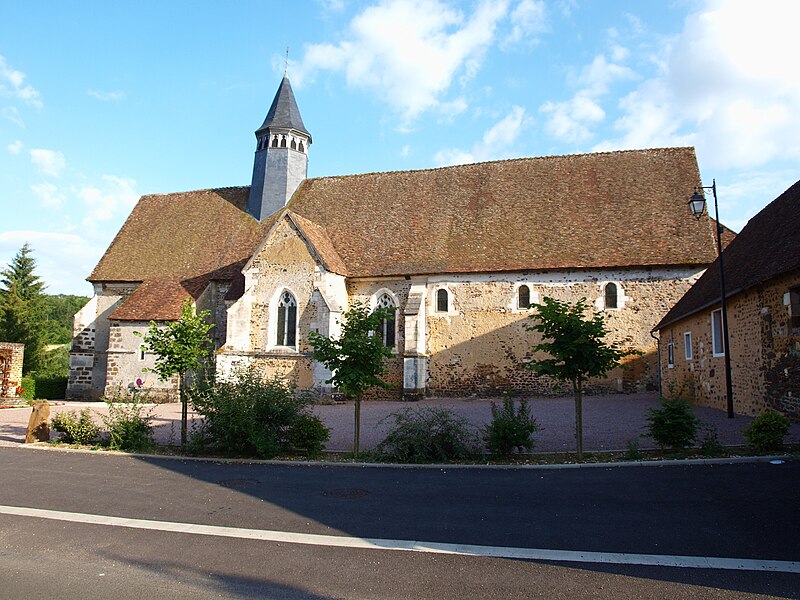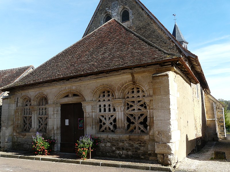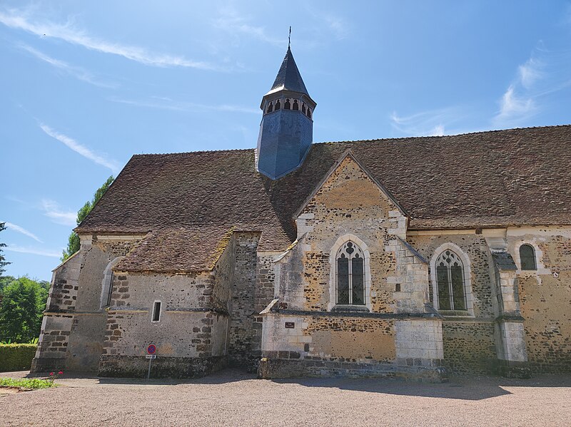 L'église de Moutiers-en-Puisaye (Yonne) est dédiée aux apôtres saint Pierre et saint Paul. Elle a été fondée au Xe siècle comme partie d'un monastère du VIIIe siècle. L'édifice, de style roman, comporte un porche à caquetoire ajouté au XIIIe siècle dont les ouvertures ont été aménagées au XIVe siècle. Le chœur et les chapelles latérales datent du XVe siècle. La nef est à vaisseau unique, avec une petite chapelle de chaque côté formant un transept. L'église aurait été édifiée avant l'an mil par des moines et comprenait un hospice accueillant des pèlerins venus de Bretagne ou d'Angleterre en route vers le tombeau de saint Pierre à Rome. Elle appartint à l'évêché d'Auxerre jusqu'au Xe siècle ; l'évêque Héribert, demi-frère du duc Hugues le Grand, la donna avec dix autres églises à l'abbaye Saint-Germain d'Auxerre après que saint Mayeul y eut rétabli la règle monastique. Viollet-le-Duc s'est intéressé à cet édifice. L'église est classée au titre des monuments historiques dans la liste de 1862. Elle est surtout remarquable pour ses peintures murales médiévales, réalisées entre le XIIe et le XVe siècle. Ces fresques, couvrant environ 200 mètres carrés, représentent des scènes bibliques (la Genèse, le Déluge), des épisodes de la vie du Christ, des saints comme saint Jean-Baptiste, ainsi que des représentations de la Vierge. Celles du côté nord, de la chapelle nord et de part et d'autre du portail datent du XIIe siècle et comprennent notamment une Annonciation et une Nativité où la Vierge est représentée allongée ; les peintures du côté sud appartiennent au XIIIe siècle. Découvertes en 1982 sous une couche de badigeon, ces fresques ont été restaurées pendant plus de douze ans par Hisao Takahashi, restaurateur japonais établi à Autun, et constituent l'un des ensembles les plus importants de Bourgogne. L'intérieur comprend également un autel baroque avec un retable orné de statues et d'un tableau du Reniement de saint Pierre, et le chœur est fermé par une grille du XIXe siècle. L'association Les amis de Moutiers participe à la valorisation du site et mobilise des fonds avec l'appui de la Fondation du patrimoine.