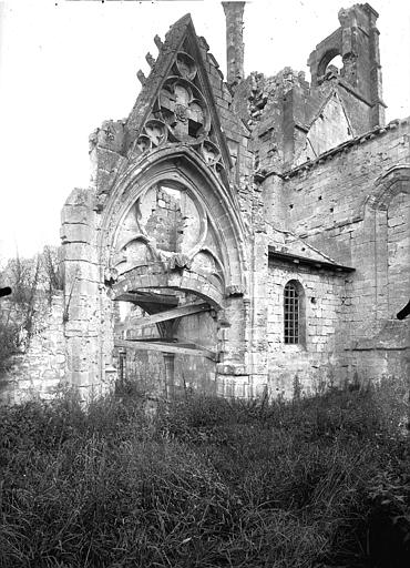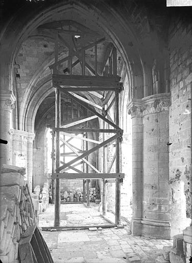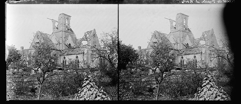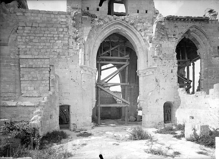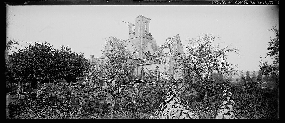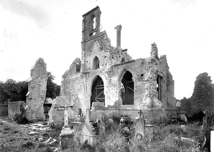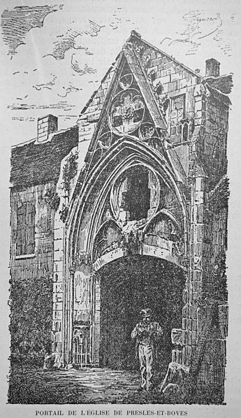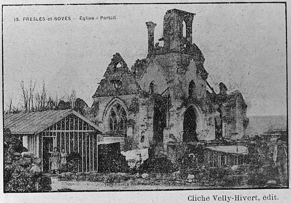 L'église Saint-Pierre-et-Saint-Paul de Presles-et-Boves (Aisne) a été construite vers 1300 grâce aux libéralités de Raoul de Presles, seigneur du lieu, et de sa seconde épouse Jeanne de Chastel. Ils firent ériger à cette date deux chapelles consacrées à la Vierge et à saint Nicolas, ce qui indique que le chantier était alors bien avancé, et les deux donateurs y furent inhumés. La nef romane compte quatre travées reposant sur des piliers ronds et possédait des bas-côtés. Le chœur et le clocher ont été refaits par Raoul de Presles entre 1300 et 1312. Durant la guerre de Cent Ans, les ravages commis par les troupes de Charles le Mauvais en 1358 et la guerre civile de 1422 entraînèrent la destruction de la partie occidentale de la nef, à l'exception du portail méridional. Selon la tradition, l'édifice fut remanié en 1439 puis en 1755, la tradition orale évoquant également des dégâts lors des guerres de Religion. Sous l'Ancien Régime, la paroisse relevait du diocèse de Soissons (grand archidiaconé, doyenné de Vailly) ; la cure était à la présentation du chapitre de la cathédrale de Soissons et le curé seul décimateur par abandon de la portion congrue. À cette époque, trois chapelles dédiées à la Vierge, à sainte Marie-Madeleine et à saint Nicolas sont attestées. L'église, initialement dédiée aux saints Pierre et Paul, prit le vocable de Notre-Dame après la réunion de la cure des Boves en 1735, puis retrouva par la suite sa dédicace primitive. Elle fut gravement endommagée lors de la retraite des troupes allemandes à la fin de l'été 1918 ; seules les voûtes du transept furent épargnées. De 1920 à 1932, l'architecte des Monuments historiques Lucien Sallez la releva à l'identique et la dégagea des constructions parasites. Elle fut de nouveau fortement touchée pendant les combats de mai et juin 1940 (nef et chœur) et restaurée à partir de 1941 par Jules Kaehrling. Le monument a été classé au titre des monuments historiques en 1912. Des photographies conservées aux Archives municipales de Toulouse, réalisées par Raoul Berthelé, documentent les dommages de la Grande Guerre.