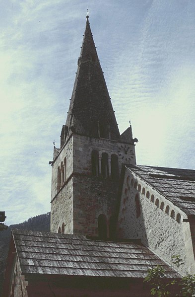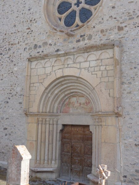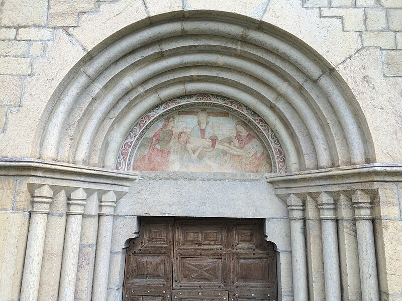 Dans son état actuel, l’édifice présente une nef de deux travées voûtées d’ogives et un chœur d’une travée à chevet plat, également voûté sous croisée d’ogives, avec au sud une chapelle allongée ouvrant sur le chœur. Les chapiteaux portent des têtes d’hommes et d’animaux en relief, et les clefs de voûte représentent des agneaux ou des blasons. L’extérieur est rythmé par des arcatures aveugles, vestiges de la bande lombarde, et les portails sud et occidental sont décorés ; le portail occidental, sous linteau, remonte au début du XVIe siècle. Le tympan du portail ouest abrite une petite fresque de la Descente de Croix, très endommagée et restaurée de façon stylisée après avoir été cachée sous un enduit. D’autres peintures, retrouvées dans les années 1960 sous des boiseries du chœur, datent du XVIe siècle et sont attribuées à des peintres italiens : elles représentent Dieu le Père, des anges, la Vierge et la Vision de saint Paul.