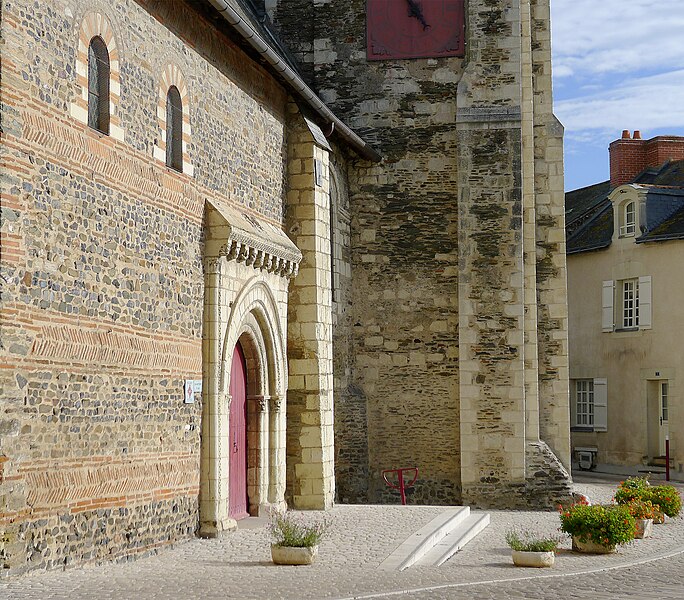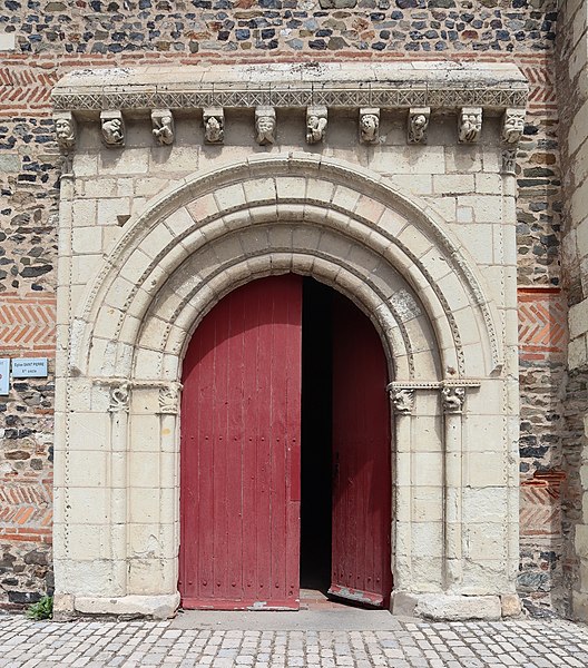L'église Saint‑Pierre‑et‑Saint‑Romain de Savennières, en Maine‑et‑Loire, est une église paroissiale dont la nef remonte au Ve siècle. La datation par carbone 14 et par luminescence optiquement stimulée des briques et des mortiers indique une construction entre 362 et 519, avec un pic de probabilité autour de 427. Sa fondation a pu être liée à la présence de saint Maurille, la Vita mentionnant un passage à Savennières vers 450, et la découverte de nombreux sarcophages du haut Moyen Âge confirme l'existence d'inhumations sur le site. La valeur patrimoniale de l'édifice est reconnue dès la première moitié du XIXe siècle et l'église figure sur la première liste des monuments historiques établie en 1840.