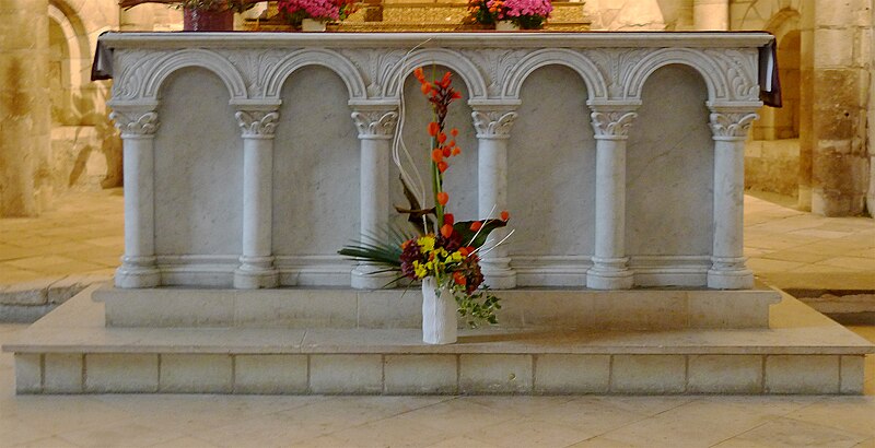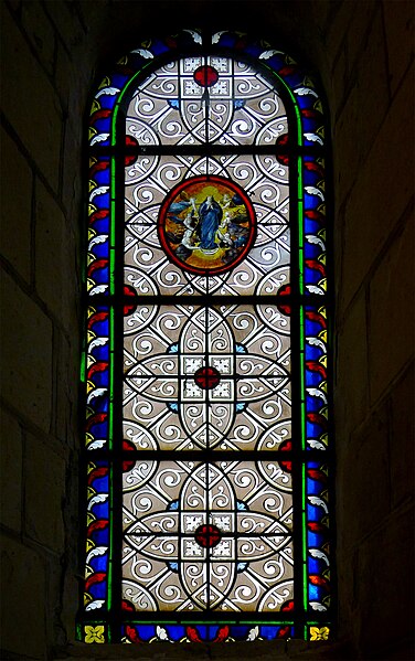 Un nouveau chantier commence en 1848 pour le chœur : réouverture des baies de l'abside, réfection des chapiteaux, suppression du badigeon et pose de vitraux ; un maître‑autel de style du XIIe siècle est posé en 1849 et un autel avec retable est installé dans le bras nord du transept en 1850. La flèche est de nouveau frappée par la foudre en 1858 et deux cloches supplémentaires sont ajoutées en 1877, après consolidation du clocher. Malgré les alertes du maire et de l'évêque dans les années 1867‑1874, peu de travaux sont réalisés dans la seconde moitié du XIXe siècle.