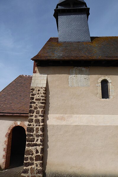 L'église se compose d'une nef et d'un chœur précédé d'un transept. La nef est la partie la plus ancienne, d'origine romane. Le portail principal donnant accès à la nef est formé de plusieurs arcs en plein cintre disposés en ressauts, sans mouluration ni décor. Le chœur et le croisillon sud datent de la fin du XVe siècle. La nef, le chœur et le croisillon sud sont couverts par un plafond formant une voûte en bois à entraits apparents. Sur le mur ouest se trouve un grand arc muré qui repose en partie sur une pile octogonale formant l'angle entre le transept et la nef. Cette pile marque le départ d'une série de piles projetées au XVe siècle pour séparer la nef d'un bas-côté sud qui n'a jamais été construit. La nef romane devait être détruite. Le croisillon nord appartient à la Renaissance et présente une porte encadrée de pilastres et surmontée d'un fronton. Sur la première travée de la nef s'élève une flèche en charpente dont le départ est aménagé pour passer d'un plan carré à un plan octogonal.