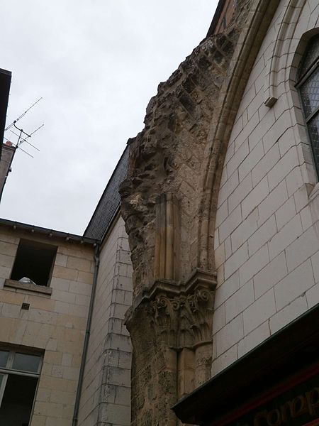 L'ancienne église Saint-Pierre-le-Puellier se situe dans le quartier dit du Vieux-Tours, à mi‑chemin entre la basilique Saint‑Martin et la Loire, au nord de la place Plumereau. La tradition attribue la fondation d'une communauté de femmes à sainte Clotilde en 512, mais cette origine n'est pas attestée par des sources contemporaines ; le monastère est en revanche encore mentionné en 780. Les fouilles montrent une occupation du site dès l'époque romaine avec des vestiges de murs, de céramiques, puis un grand édifice peut‑être thermal transformé ultérieurement par des installations artisanales comme des tanneries ; le site connaît ensuite une phase d'abandon avant une réoccupation médiévale. Le monastère apparaît dans les sources au VIIIe siècle et, à partir du XIe siècle, il évolue en paroisse puis en collégiale ; l'érection en collégiale est attestée en 1073. Une nouvelle église de style gothique angevin est construite entre la fin du XIIe siècle et la première décennie qui suit, après une reconstruction engagée dans la seconde moitié du XIIe siècle. En 1199, des lettres patentes permettent aux religieux de pratiquer le jugement « de l'eau et du feu », une épreuve qui se déroulait dans une salle voûtée datée de la fin du XIVe-début du XVe siècle. La collégiale est agrandie en 1406 et le cloître rebâti vers 1416 ; des vitraux sont attribués aux frères Le Pellerain et le jubé est abattu en 1738 pour être remplacé par une grille en ferronnerie. En 1562, les bâtiments sont pillés par les Huguenots et les reliques de sainte Monégonde y conservées disparaissent. Vendue comme bien national le 7 décembre 1791, l'église et le cloître sont largement démolis par leurs acquéreurs et les décombres sont probablement revendus comme matériaux de construction. Il ne subsiste aujourd'hui qu'une partie de la première travée et la totalité de la seconde travée du collatéral nord, vestiges datables stylistiquement de 1150–1170, ainsi que quelques éléments déplacés au musée de la société archéologique de Touraine. Ces vestiges ont été intégrés à des constructions ultérieures et transformés en habitation : des murs prennent appui sur les arcades, un plancher divise le volume en deux niveaux et une salle conserve une voûte de type gothique de l'Ouest. Le mur septentrional de la seconde travée présente deux baies en plein cintre à cordon d'origine, un modèle identique existe sur la première travée conservée, et plusieurs chapiteaux sculptés subsistent au nord‑est; ceux du sud‑est ont été remaniés. Contiguë au mur nord du collatéral, une longue salle à trois voûtes en berceau brisé date de la phase d'agrandissement du début du XVe siècle et pourrait avoir servi de passage vers le cloître. Les vestiges de Saint‑Pierre‑le‑Puellier font l'objet d'une inscription au titre des monuments historiques depuis 1946.