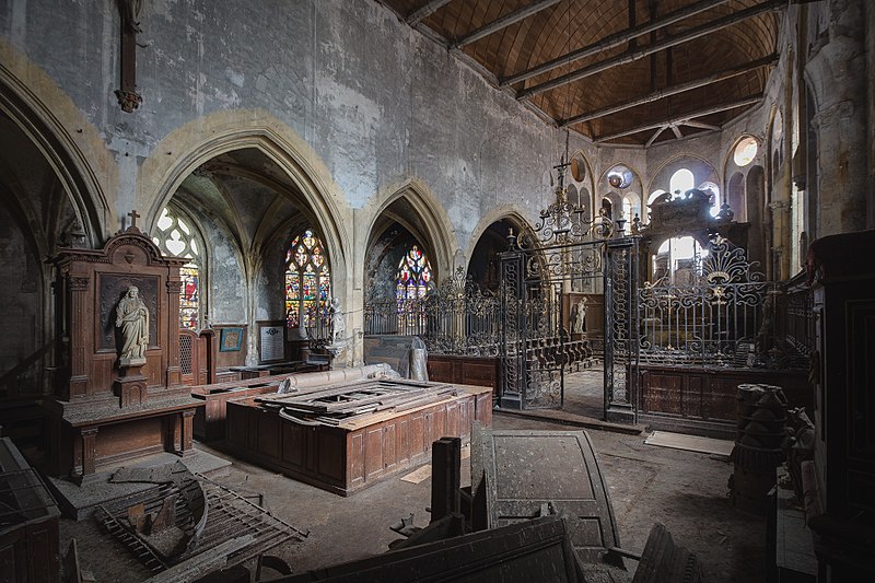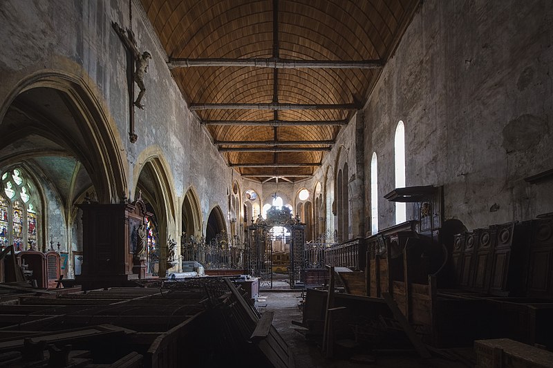 L'église Saint-Pierre-le-Rond est une église catholique située rue Émile-Peynot, au cœur de Sens, dans le département de l'Yonne. Fondée au XIIIe siècle, son nom « le Rond » provient de la forme de son clocher, appellation destinée à la distinguer de l'église Saint-Pierre-le-Donjon, aujourd'hui disparue. Le clocher a été élevé en 1728. En 1791, Rochette, l'une des cloches, fut donnée à l'église Sainte-Florence de Paron. Pour échapper aux abus de ce temps, son curé, M. Rupier, dut se déguiser en charretier pendant la Révolution. Deux citoyens, Macé et Thomas, achetèrent l'église « pour la transformer en grenier à fourrage », mais protégèrent en réalité le bâtiment et son mobilier, puis la revendirent au curé à prix coûtant à son retour. L'abbé Rupier fit don de l'église à la fabrique de la cathédrale en 1797. La grande nef date du XIVe siècle et le bas-côté nord remonte au début de la Renaissance, vers la fin du XVe siècle. Les boiseries et le retable datent du XVIe siècle, ainsi que la charpente de la nef voûtée, fortement endommagée par une tornade en 1971, et la tour. Une sacristie a été ajoutée au bas-côté. L'édifice est classé au titre des monuments historiques depuis 1965 et plusieurs pièces de mobilier sont également protégées : une mise au Tombeau, des grilles en fer forgé marquées « A M », les vitraux Renaissance du bas-côté, deux statues en bois (saint Romain et saint Bernard), un bas-relief de saint Hubert et une statuette de sainte Anne. Parmi les autres œuvres conservées figurent une Pietà, un saint Sébastien et une Résurrection en pierre, une statue de moine en bois, une peinture sur bois des quatre Évangélistes, deux tableaux représentant une Vierge à la colombe et saint Pierre délivré par l'ange, ainsi que soixante-deux stalles sculptées de la Renaissance. Jean Cousin l'Ancien a été cité pour une partie des vitraux originaux. Paul Deschamps, qui fut directeur du musée des monuments français en 1927, profita de la dépose de panneaux de vitraux pendant la Seconde Guerre mondiale pour faire réaliser des copies par de grands maîtres verriers, comme ce fut le cas pour d'autres vitraux de cathédrales et d'églises. Victime de vols et de dégradations, l'église n'est plus affectée au culte et est fermée au public depuis 1964. Son entretien est assuré par les Monuments historiques, les Bâtiments de France, la Ville de Sens et le Conseil général de l'Yonne. Depuis les années 2000, son clocher est loué à un opérateur de téléphonie mobile. En 2014, des habitants ont créé l'association « Sauvons notre patrimoine, l'église Saint-Pierre-le-Rond » pour soutenir la sauvegarde et la restauration du bâtiment. La Mairie de Sens a confié en 2015 une mission d'expertise à un inspecteur général des monuments historiques, assisté d'un charpentier. Malgré ces initiatives, l'intérieur demeure très délabré et, en 2018, aucun travaux n'avait encore été réalisé. Les documents et photographies présentent le chevet, des détails de vitraux Renaissance, le maître-autel du XVIIIe siècle en mauvais état et des scènes des verrières, notamment Joseph dans la citerne et Jacob avec la tunique ensanglantée. Des articles connexes et références figurent notamment dans les portails des monuments historiques, de l'Yonne et de l'architecture chrétienne.