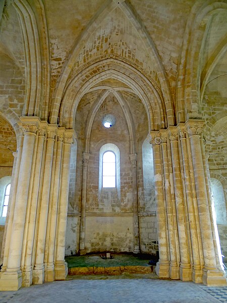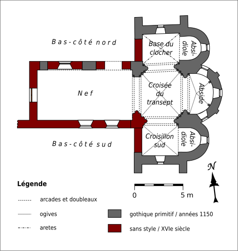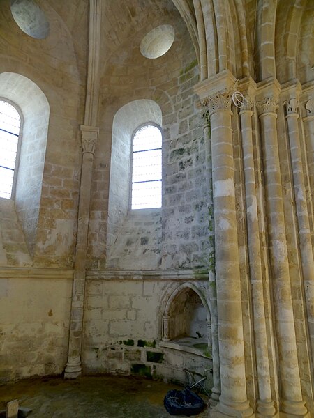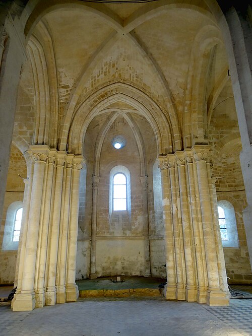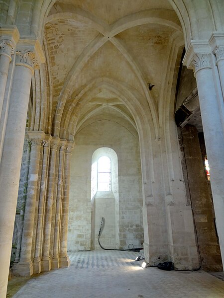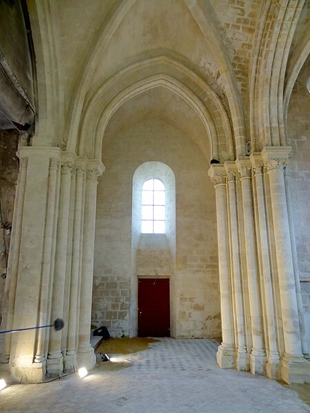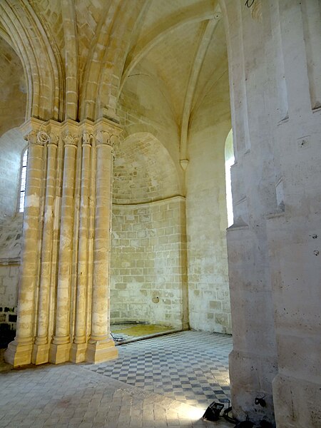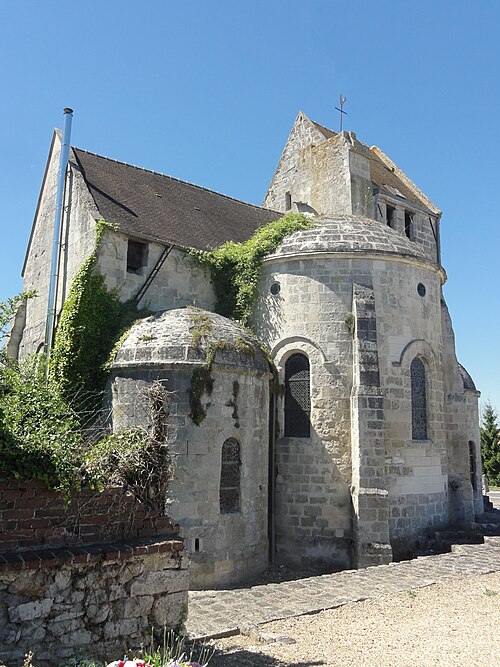 L'église Saint-Pierre de Vaumoise, située dans l'Oise à l'est de Crépy-en-Valois, est placée sous le vocable de saint Pierre. Construite d'un seul jet autour de 1150, elle illustre une architecture de transition entre le roman et le gothique primitif. L'ensemble est particulièrement remarquable par son chevet en hémicycle composé d'une abside flanquée de deux absidioles couvertes de calottes de pierre, une disposition assez rare. Le chœur, tant par son plan que par son décor sculpté, manifeste cette évolution stylistique. Les chapiteaux, finement sculptés de feuilles d'eau, d'acanthe et de palmettes, atteignent un niveau décoratif exceptionnel pour le milieu rural et se rapprochent des productions contemporaines de Senlis. La nef et le clocher central furent détruits pendant la guerre de Cent Ans puis reconstruits de façon simplifiée au XVIe siècle : la nef est alors réédifiée sans bas-côtés et le clocher prend une forme fonctionnelle au-dessus du croisillon nord. Le transept, légèrement remanié lors de la même campagne, et les parties orientales conservent en grande partie leurs caractéristiques anciennes. La croisée du transept et l'abside sont voûtées d'ogives, les croisillons conservent des voûtes d'arêtes et les absidioles des voûtes en berceau ou en cul-de-four. Certaines voûtes datent du XVIe siècle et atteignent environ 9 m de hauteur, tandis que la voûte originelle de l'abside mesure près de 8,70 m sous la clé. La nef, simplement plafonnée et dénuée de caractère, présente au nord de grandes arcades en tiers-point bouchées et un plafond plat enduit. Le plan est symétrique : petite nef rectangulaire, transept non débordant, abside en hémicycle et deux absidioles ; le clocher moderne en bâtière s'élève au-dessus du croisillon nord et les vestiges de l'ancien clocher subsistent dans les combles. La retombée des voûtes et la hiérarchie des diamètres des fûts et des corbeilles témoignent d'un ordre soigné ; les bases présentent des tores et quelques griffes végétales stylisées aux colonnes engagées. L'abside s'ouvre sur trois baies en plein cintre surmontées d'un petit oculus et abrite une piscine liturgique au sud dont la niche en tiers-point est entourée d'un tore. Les absidioles offrent des baies à ébrasement profond dont l'ébrasement se prolonge jusqu'au sol, et l'absidiole sud conserve une petite piscine à vasque sculptée de besants. À l'extérieur, l'appareil en pierres de moyen appareil est régulier à l'est et plus disparate sur la façade et le clocher, ces parties ayant sans doute été remaniées avec des matériaux de récupération. La composition du chevet, avec ses trois absides en hémicycle coiffées de toitures de pierre, confère à l'édifice un caractère pittoresque rare dans la région. La façade, dépourvue d'ornement et dotée d'un portail en arc en anse de panier légèrement désaxé vers la gauche, présente des élévations marquées par corniches et retraits hérités de la première période gothique. L'édifice dépendait autrefois du diocèse de Soissons et, depuis 1996, est rattaché à la paroisse Saint-Sébastien de Crépy-en-Valois ; les offices ont été provisoirement suspendus lors de la restauration complète engagée en 2013. L'église a été inscrite au titre des monuments historiques par arrêté du 15 octobre 2014, en raison du grand intérêt de ses parties orientales. Des interventions anciennes du XVIe siècle ont modifié la croisée du transept et d'autres éléments, mais n'ont pas effacé la qualité de la sculpture médiévale. La sacristie a été démolie vers 2014 dans le contexte des travaux, qui visent à assurer la pérennité des couvertures de pierre et à réparer des infiltrations liées à des restaurations antérieures.