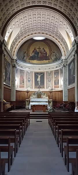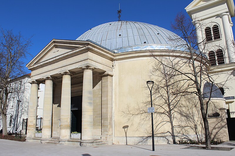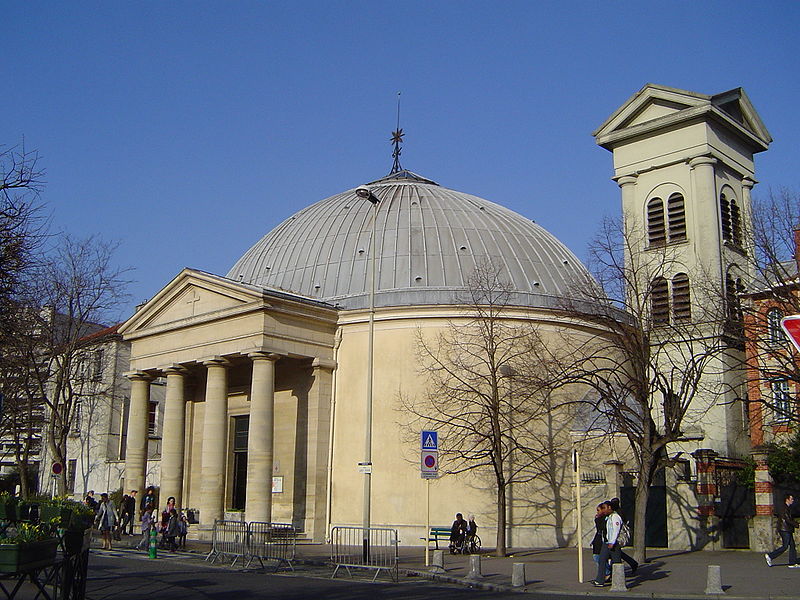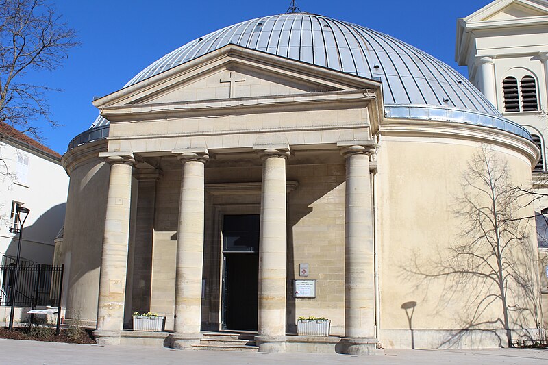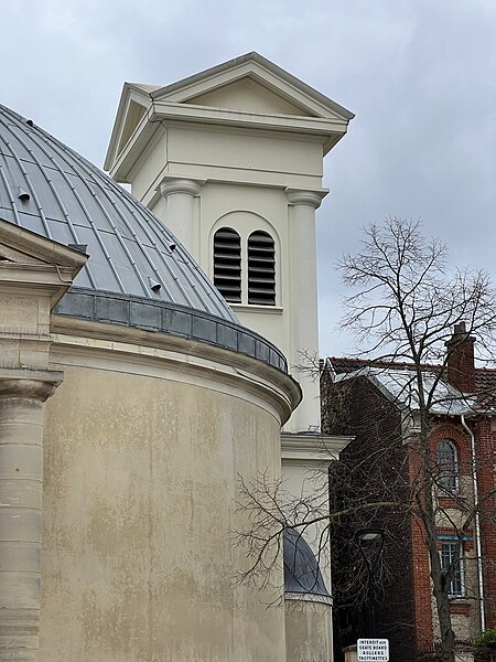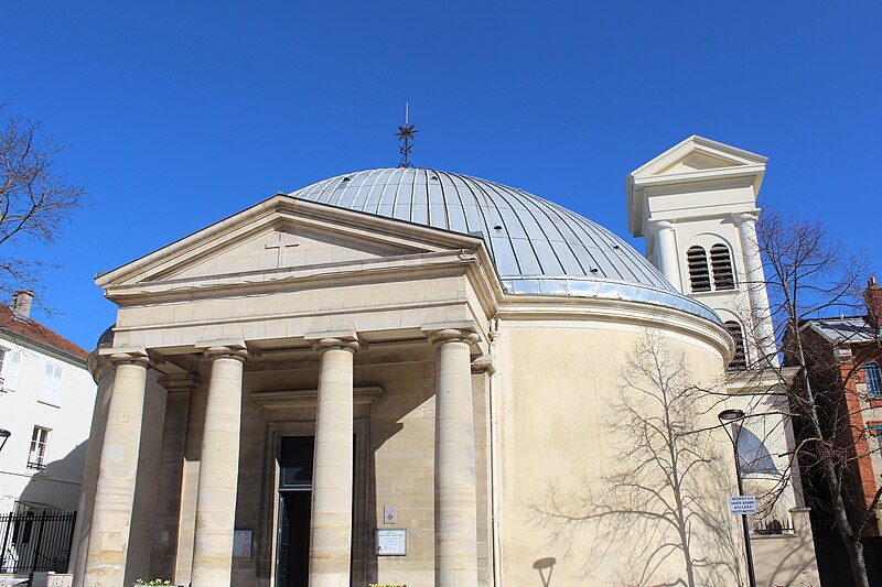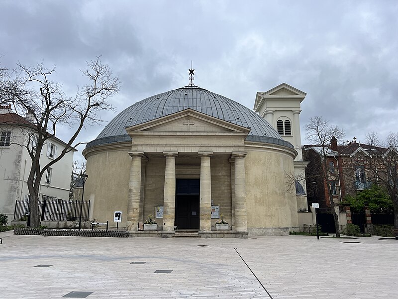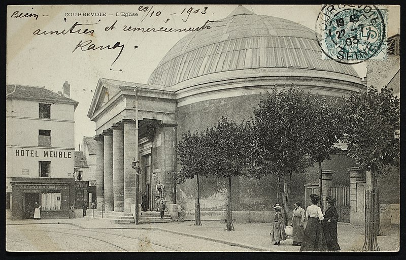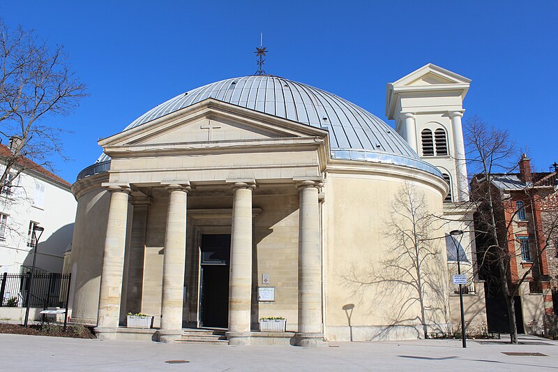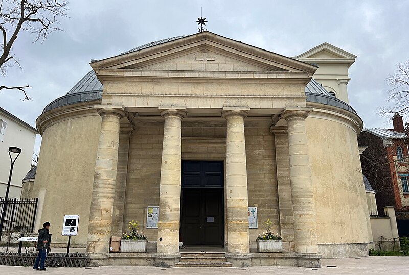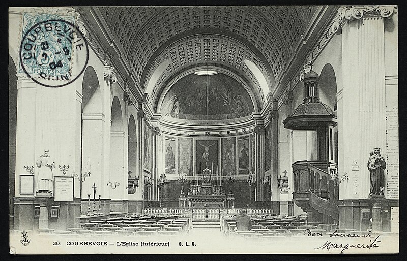 L'église Saint-Pierre-Saint-Paul de Courbevoie, située dans les Hauts-de-Seine, est un lieu de culte catholique inscrit au titre des monuments historiques depuis le 11 juin 1971. Dès le XIVe siècle une chapelle dédiée à Saint-Pierre et Saint-Paul occupait le site ; détruite pendant la guerre de Cent Ans, elle fut reconstruite au XVIe siècle puis élargie au début du siècle suivant par deux chapelles latérales consacrées à Notre‑Dame et à saint Sébastien, avant de tomber en ruines vers 1770. Nommé vicaire de Courbevoie en 1769, l'abbé Pierre Hébert œuvra à la création de la paroisse autorisée en 1784 et fut nommé curé en 1785 ; il engagea la construction de la nouvelle église dont la première pierre fut posée le 9 mai 1790. L'édifice fut conçu et dirigé par Louis Le Masson, architecte et ingénieur des Ponts et Chaussées, élève de Claude‑Nicolas Ledoux ; sa réalisation, menée entre 1790 et 1793, présente un plan elliptique surmonté d'un dôme. Le Masson adapta son projet à l'étroitesse du terrain en disposant la nef principale en rotonde elliptique précédée d'un petit péristyle à quatre colonnes et en plaçant, sur le petit axe, un sanctuaire rectangulaire flanqué de collatéraux ouverts par des arcades sur la rotonde. La voûte ovale de la rotonde, percée d'un oculus central, et la sobriété des éléments décoratifs — corniche dorique, niches et péristyle à fronton triangulaire — participent de la rigueur du décor intérieur et extérieur. Après la destitution de Louis Le Masson en 1793, les travaux s'interrompirent et, pendant deux décennies, l'édifice resta inachevé et se détériora. En 1819 la duchesse d'Angoulême réunit et offrit des fonds qui permirent la restauration et l'achèvement du monument. De 1868 à 1870 l'architecte Jean‑Baptiste Guenepin dirigea une campagne d'agrandissement qui modifia l'orientation de l'église : la nef fut prolongée vers l'est pour ouvrir sur un nouveau chœur et les chapelles latérales furent allongées et élargies ; le portique d'entrée, formé de quatre colonnes ioniques, d'un entablement et d'un fronton triangulaire, fut réalisé à cette occasion. Les décors picturaux et les grandes toiles du chœur sont pour la plupart installés à partir de cette période et structurent visuellement le sanctuaire. Après la loi de séparation de 1905, les inscriptions «République française» puis «Liberté, Égalité, Fraternité» furent peintes au fronton ; la première disparut lors du bombardement du 15 septembre 1943 et la seconde fut effacée lors de la restauration de la façade en 1992‑1993. L'abbé François Neuville, curé de 1907 à 1942, fit édifier le clocher prévu par les plans d'origine en 1932 et demanda à reposer sous la tribune d'orgue ; son action paroissiale est rappelée par une épitaphe. Depuis la chaire de cette église fut lancé, le 31 janvier 1954, un appel à la solidarité nationale en faveur des sans‑abri, relayé ensuite par les stations de radio. Menacée de destruction par un projet immobilier en 1971, l'église échappa à la démolition grâce à l'intervention du docteur Henri de Frémont et à son inscription à l'inventaire des monuments historiques le 11 juin 1971 ; le clocher de 1932 n'était pas inclus dans la protection. Des travaux d'entretien et de restauration ont été menés par la suite : ravalement de la façade et du péristyle en 1980, réfection de la toiture en 1987‑1988 et restauration intérieure complète en 1992‑1993. Au fil du XIXe et du XXe siècle des adjonctions furent réalisées, notamment une chapelle des catéchismes construite par l'architecte Daubin en 1925 et le clocher de 1932. La coupole de la rotonde, construite en poterie assemblée sur une armature en fer et recouverte d'un enduit, avait été à l'origine protégée par une couverture en ardoise remplacée ensuite par un toit en plomb à la suite des dégradations. Avec l'église Saint‑Nicolas‑et‑Saint‑Marc de Ville‑d'Avray, l'édifice constitue l'un des rares monuments religieux construits en France pendant la période révolutionnaire ; il conserve la singularité de son plan en T, formé d'une rotonde elliptique accolée à un vaisseau rectangulaire, et les principes structurels et décoratifs imaginés par Le Masson.