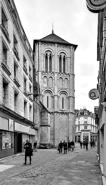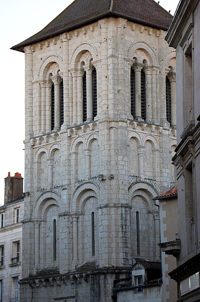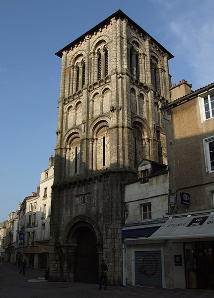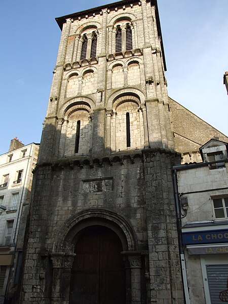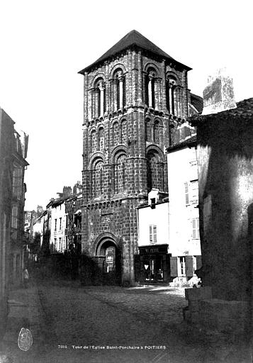 L’église Saint-Porchaire, dédiée à saint Porchaire, se situe dans le centre historique de Poitiers, dans le département de la Vienne, rue Gambetta, voie piétonne et commerçante. La tour, datée du quatrième quart du XIe siècle et du XIIe siècle, et la nef du XVIe siècle sont inscrites au titre des monuments historiques. L’origine du culte remonte à Porchaire, abbé de Saint-Hilaire-le-Grand, dont le corps fut d’abord déposé à Saint-Sauveur; à la fin du IXe siècle, Thibaut, trésorier de Saint-Hilaire, fit édifier un sanctuaire près du palais et y transféra les reliques, suscitant la dévotion. En 1068, l’édifice fut rattaché à l’abbaye de Bourgueil et, au cœur d’un quartier marchand, le prieuré Saint-Porchaire jouxte l’un des principaux cimetières de la ville. De l’église carolingienne subsistent la façade occidentale, aujourd’hui encadrée par le clocher-porche du XIe siècle et la nef du XVIe siècle, ainsi qu’une petite crypte inaccessible. En 1431, la cloche de l’Université fut installée dans le clocher pour annoncer les assemblées universitaires et s’y trouve toujours. À la fin du XVe siècle, l’église menaçant ruine, la paroisse entreprit la construction d’un nouvel édifice dont les travaux commencèrent en février 1509 et s’achevèrent en 1520; la nouvelle nef, plus large mais moins longue, inclut des chapelles latérales ajoutées au milieu du XVIe siècle, qui ont livré des fresques redécouvertes en 1951 mais aujourd’hui illisibles. En 1702, saint Louis-Marie Grignion de Montfort rencontra Marie-Louise Trichet dans le confessionnal de cette église, et en 1710 le prieuré fut rattaché au petit séminaire Saint-Charles tout en conservant sa fonction paroissiale. Pendant la Révolution, l’église servit au culte décadaire, puis retrouva sa mission paroissiale sous le Concordat en 1802. En 1843, un projet municipal de démolition du clocher pour élargir la rue fut annulé après l’intervention d’antiquaires et une ordonnance du 4 juin 1843; le clocher-porche fut classé monuments historiques en 1846 grâce à l’appui de Prosper Mérimée, la nef l’étant en 1908. D’importants travaux de consolidation et de restauration du clocher-porche ont été menés de mars 2011 à juin 2012, comprenant la pose de chaînages en armatures de fibre de verre noyées dans un mortier époxy, la dépose et la repose de l’escalier en vis, le nettoyage et la réparation des parements par micro-gommage, micro-abrasion et laser, le remplacement de pierres très altérées, le rejointoiement à la chaux, la pose de protections en plomb sur les corniches, la rénovation des abat-sons et la consolidation du beffroi. L’entrée du porche a été remise en valeur pour l’accessibilité, avec reprise totale du dallage au rez-de-chaussée, refonte des enduits, installation d’un nouveau tambour conforme aux règles de sécurité et mise en place d’un éclairage fonctionnel et de mise en valeur. Le clocher-porche, bordé de maisons et en saillie sur la voie piétonne, est un chef-d’œuvre d’arcatures et d’arcades qui signale le sanctuaire dans la ville; il présente un plan carré de 24 mètres répartis sur trois niveaux, des contreforts plats et des demi-colonnes, ainsi qu’un riche décor de chapiteaux sculptés représentant lions stylisés, un calice où s’abreuvent des oiseaux et la scène de Daniel parmi les lions. Le rez-de-chaussée forme un portail à deux voussures, surmonté d’un relief figurant un Christ en gloire; le niveau médian, percé de baies étroites encadrées d’arcatures géminées, éclaire une salle qui a pu servir de chapelle; le troisième niveau, ouvert par des couples de baies à colonnettes, abrite la chambre des cloches et son beffroi en charpente, conçu pour supporter et absorber les vibrations des cloches, et des trompes d’angles indiquent qu’une flèche était prévue. L’accès excentré depuis le porche mène à une double nef gothique, résultat de la reconstruction réalisée entre 1508 et 1520 : la nef, tronquée à l’est et élargie en reportant le mur sud, s’organise en deux vaisseaux séparés par trois piles cylindriques prolongées par des nervures prismatiques qui rayonnent en voûtes évoquant un palmier ou un parapluie. Six chapelles latérales sont ménagées dans l’épaisseur des murs et le chevet, plat et formant un double chœur, est éclairé par des baies à remplage flamboyant; la double nef peut s’expliquer par la double affectation prieurale et paroissiale, dans la lignée d’exemples comme l’église des Jacobins de Toulouse. Sous le porche se voit une pierre tombale du XVIe siècle attribuée à Macé, échevin et instigateur d’une halle aux poissons, ornée d’un personnage et d’écus à poissons; sur les murs des nefs subsistent des traces du décor peint du XVIe siècle représentant les apôtres, découvertes en 1951 mais aujourd’hui devenues illisibles. Les vitraux du chevet, réalisés par Henri Carot en 1912-1913, représentent l’apparition du Christ à Marie-Madeleine et la Nativité et adoptent un traitement de style Renaissance pour harmoniser décor et architecture; les vitraux des nefs, datés des années 1950, sont l’œuvre de l’atelier de Francis Chigot. Chaque chœur possède un retable : au nord, un retable baroque de 1680 richement orné provenant de Lhommaizé et montrant le Christ sur la porte du tabernacle entouré des quatre évangélistes et de deux anges; au sud, un retable plus sobre surmonté d’une statue de la Vierge à l’Enfant du XVIIIe siècle. Le reliquaire en pierre de saint Porchaire, en forme de sarcophage et restauré, semble remonter à la translation des reliques dans une nouvelle église au Xe siècle; sorti de la crypte en 1951, il fut placé au centre du chœur et porte l’inscription latine « In hoc tumulo requiescit scs Porcharius ». Le mobilier comprend une Vierge à l’Enf