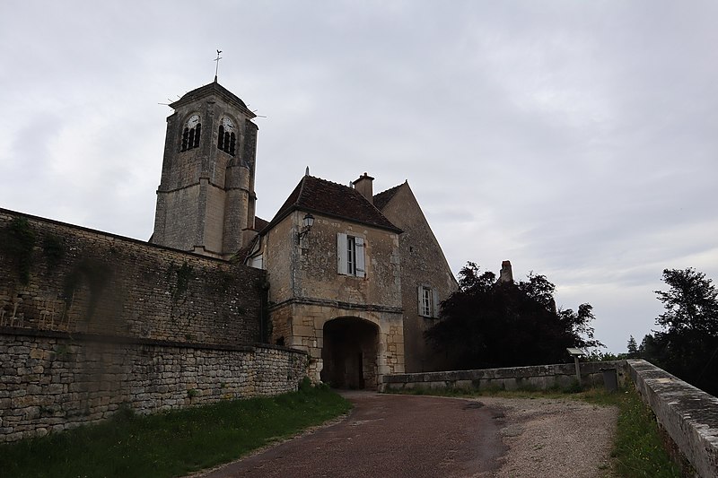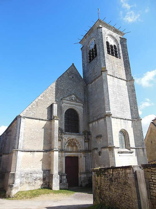 L'église de Châtel-Censoir, appelée Église Saint-Potentien, est située à Châtel-Censoir dans le département de l'Yonne. L'édifice, classé au titre des monuments historiques en 1908, est en réalité une collégiale dirigée par un chapitre de chanoines installé du IXe siècle jusqu'à la Révolution. Il contient des reliques de saint Potentien. Le monument se compose de trois parties principales : le chœur roman, la nef de style Renaissance et des bâtiments annexes sur le flanc nord-est. Le chœur, qui repose sur une crypte, remonte au XIe siècle. La nef a été construite ou reconstruite entre le XVe et le XVIIe siècle. La sacristie et la salle capitulaire attenantes sur le flanc nord-est datent du XVIIIe siècle. Le clocher actuel a été élevé dans la seconde moitié du XVIe siècle ; un autre clocher pointu figurait sur la croisée du transept selon des documents anciens (plan du chanoine Lacane) mais a été détruit au début du XIXe siècle. À l'intérieur, le chœur présente un ensemble de chapiteaux sculptés de style roman archaïque, ornés d'éléments végétaux, géométriques et d'animaux affrontés. Des carreaux émaillés du XIIIe siècle existent dans la salle capitulaire mais ne sont pas visibles. Un fragment de peinture murale ocrée subsiste sur la voûte de la crypte.