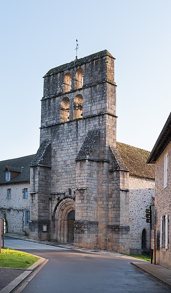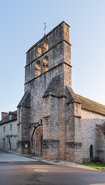 Le cartulaire d'Uzerche mentionne l'existence de la paroisse au IXe siècle. L'église est d'origine romane et a été en partie reconstruite au XVe siècle après avoir été presque entièrement incendiée en 1426 par Poton de Xaintrailles et ses soldats. Le monument fut reconstruit dans la seconde moitié du XVe siècle. Le plan se compose d'une nef d'une travée sur plan carré, d'un faux transept formé par deux chapelles latérales et d'un chevet comprenant une abside à trois pans précédée d'une travée droite. Sur la façade ouest, le mur-clocher présente deux niveaux, chacun percé de deux arcades en plein cintre, et semble appartenir à l'époque romane. Le portail, voûté en plein cintre, comporte quatre voussures dont trois sont ornées de tores, et une archivolte d'encadrement qui retombe sur deux culots rectangulaires sculptés. Le chevet reste de style roman mais ses ouvertures ont été largement remaniées. Lors de la distribution des reliques du trésor de l'abbaye de Grandmont en 1790, l'église reçut celles de saint Etienne de Muret, de deux compagnons de saint Maurice et des sept martyres compagnes de sainte Ursule.