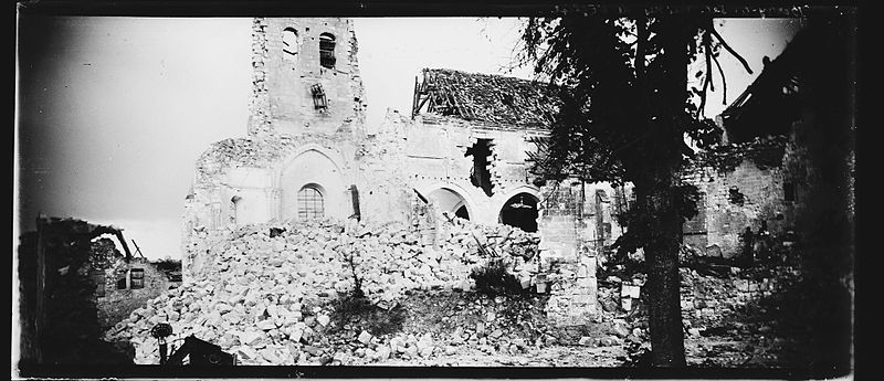 Restauration de l'église après les dégâts de la Première Guerre mondiale.