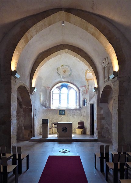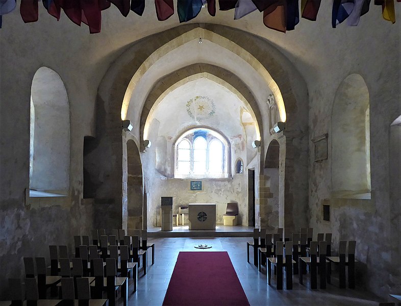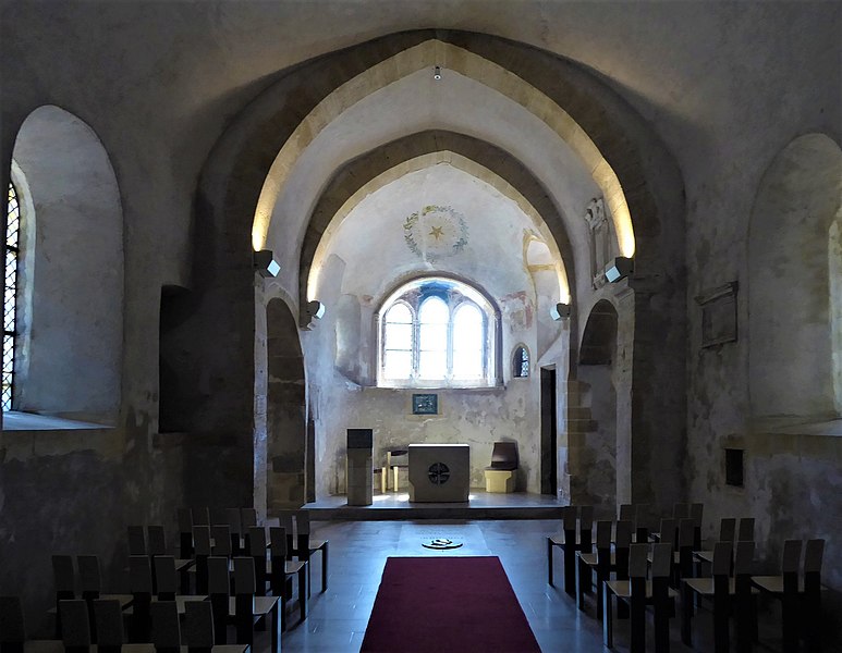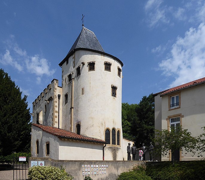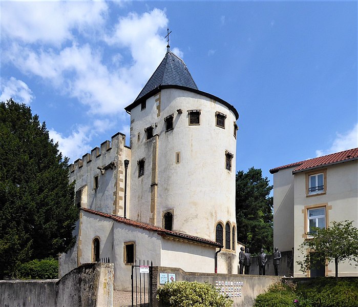 L’église Saint-Quentin de Scy-Chazelles, église fortifiée datant du XIIe siècle, se situe dans la banlieue de Metz et abrite la sépulture de Robert Schuman. En 825, l’évêque de Metz Drogon crée une paroisse regroupant quatre villages, dont Chazelles ; une première chapelle est édifiée en 1120 par l’évêque Étienne de Bar, et l’édifice actuel remonte à la fin du XIIe siècle. Classée dès 1862 parmi les premiers monuments du département de la Moselle, elle fait partie d’un ensemble d’églises fortifiées autour de Metz. À l’origine, l’église se compose d’une nef voûtée en berceau plein cintre et d’une abside en cul-de-four ; les petites fenêtres romans et l’oculus quadrilobe de la façade principale témoignent encore de cette époque. Entre les XIIIe et XVIe siècles, deux chapelles secondaires sont ajoutées de part et d’autre de la travée centrale et l’édifice est renforcé : un étage est aménagé au-dessus de la nef et de l’abside, avec des murs crénelés percés d’embrasures de tir fermées par des panneaux en bois, et la porte sud est protégée par une bretèche.