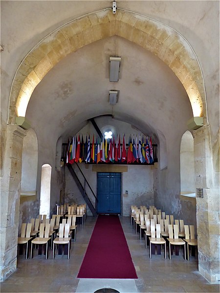 La documentation iconographique présente les façades est et sud de l’édifice, la tombe de Robert Schuman et l’intérieur de la chapelle, avec la tombe et l’ensemble des drapeaux des pays de l’Union européenne. Des notices et ressources complémentaires sont disponibles, notamment sur Wikimedia Commons, Mérimée, Structurae et Clochers de France.