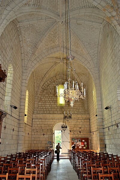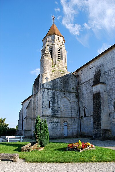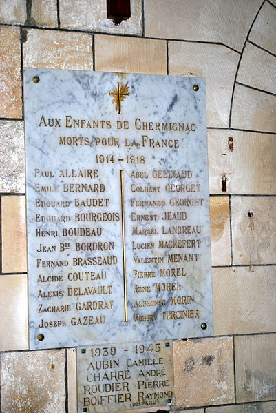 L'église Saint-Quentin, à Chermignac (Charente-Maritime), est une église catholique dont la construction s'étend du XIIe au XVIe siècle, avec des éléments particulièrement marqués aux XIIIe, XIVe et XVIe siècles. En 1610, un chanoine de Saintes finança la réfection de la couverture; ses armes figurent sur une clé de voûte. La façade occidentale, épaulée par deux contreforts, présente un portail roman à quatre voussures en plein cintre aux claveaux nus. À gauche de la nef, une forte souche carrée supporte une tour octogonale dont le troisième étage est percé d'une grande fenêtre sur chaque face; l'étage supérieur, plus réduit, s'ouvre par de petites meurtrières et se termine par une toiture en pignon aigu à huit fuseaux. L'angle nord de la souche comporte une tour d'escalier, carrée à sa base et cylindrique en élévation, achevée par un pyramidon de pierre couvert d'écailles dentelées. La nef à trois travées est voûtée en ogive à huit branches; les arcs retombent sur quatre demi-colonnes sans chapiteaux. Le mur sud compte trois fenêtres romanes sans ornement, le mur nord deux plus petites. Un léger étranglement de la nef est marqué par deux pilastres carrés flanqués de colonnes engagées qui supportent un arc en tiers-point; les angles rentrants des pilastres sont garnis de colonnes plus petites terminées par des chapiteaux à crochets. La troisième travée présente, à gauche, une baie en plein cintre donnant accès sous le clocher à un porche qui communique avec l'extérieur par une petite porte carrée; un vaste ossuaire carré et voûté se trouve sous ce porche. Le chœur et l'abside sont voûtés en ogive; le mur gauche du chœur est percé d'une grande baie en tiers-point ouvrant sur une chapelle seigneuriale, elle aussi voûtée en ogive. L'abside est éclairée par trois fenêtres en plein cintre dont les arcs sont simplement ornés d'un tore. On note la présence de chapiteaux sculptés et d'une croix hosannière du XVe siècle située à quelques mètres du mur nord. Des photographies montrent la façade, le clocher, la nef, le sanctuaire, les chapiteaux nord et sud de l'arc triomphal, la croix hosannière, le bénitier, la chaire, les stalles et les vitraux. L'église Saint-Quentin est classée au titre des monuments historiques en 1906.