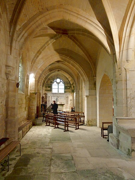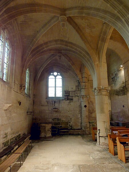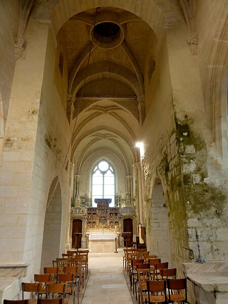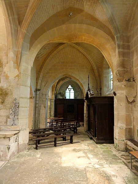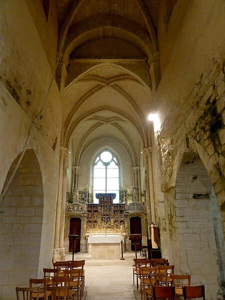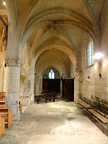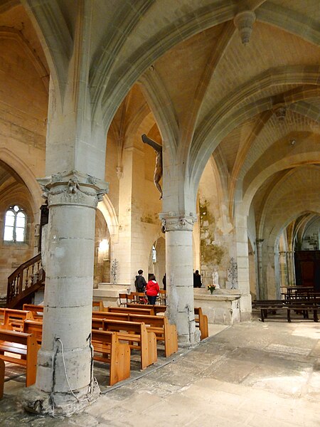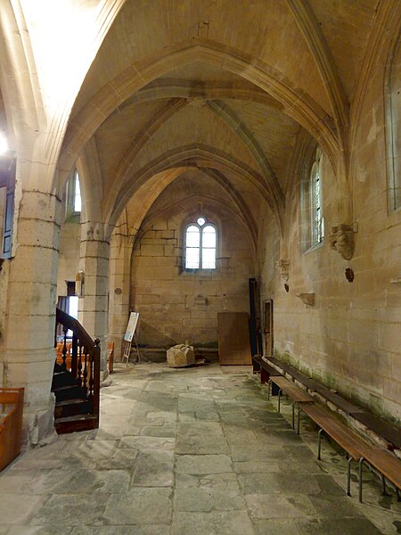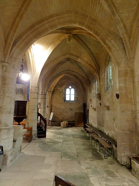 L'église Saint-Quentin de Nucourt, isolée au milieu du cimetière à un kilomètre du village dans le Vexin, présente une apparence extérieure homogène qui masque une importante diversité stylistique intérieure. Son plan rectangulaire cache un édifice complexe, reconnaissable surtout à ses deux clochers de périodes différentes : un clocher-porche occidental inachevé de style Renaissance et un clocher central en bâtière d'allure gothique primitive. La base du clocher central et le croisillon sud constituent les parties les plus anciennes, tandis que le chœur et les chapelles ont été édifiés lors de campagnes successives relevant du gothique primitif et du gothique rayonnant. La nef, à trois travées accompagnée de bas-côtés, montre une influence tardive du style flamboyant mêlée à des éléments de la Renaissance, avec un vaisseau central à deux niveaux d'élévation dépourvu de fenêtres latérales. L'église conserve une vaste toiture unique qui recouvre les trois vaisseaux, seul le clocher gothique dépassant de la toiture. Plus encore que pour son architecture, l'édifice est remarquable par son grand retable en pierre situé au chevet du vaisseau central, daté du début du XVIe siècle et illustrant la Passion du Christ avec un degré de sculpture et de détail exceptionnel pour la pierre. Les volets peints du retable, contemporains et datés de 1533, racontent le martyre de saint Quentin ; pour des raisons de conservation ils ont été déposés et présentés en exposition avant d'être conservés en dépôt. Classée au titre des monuments historiques par arrêté du 24 mars 1915, l'église a bénéficié d'une restauration au cours de la seconde moitié du XXe siècle. Elle dépend aujourd'hui du secteur paroissial Vexin-Ouest et n'accueille plus que quelques offices annuels. Les élévations intérieures révèlent une riche diversité de profils de voûtement et d'ornementation : voûtes d'ogives, clés de voûte de type Renaissance et cul-de-lampe sculptés, chapiteaux aux motifs variés et décors de la période flamboyante tardive. Le clocher-porche Renaissance, dont le couronnement n'a jamais été réalisé, porte la marque d'un maître-maçon connu et d'une exécution inachevée ; il contraste avec l'étage de beffroi du clocher central, plus sobre et considéré comme prototype des clochers gothiques du Vexin. À l'extérieur, les élévations montrent des pierres de qualité locale, des contreforts variés selon les campagnes et la tourelle d'escalier qui flanque le chevet. Le mobilier de l'église compte dix-sept éléments classés au titre objet, parmi lesquels treize statues, le retable en pierre avec ses volets peints, les fonts baptismaux, un lutrin et une plaque funéraire ; plusieurs pièces ont été déposées dans des musées régionaux pour conservation. Le retable de pierre au chevet, d'environ 1530, occupe toute la largeur du vaisseau central, associe niches sculptées et statuettes en plusieurs registres et se distingue par la finesse de sa sculpture, son iconographie centrée sur la Passion et la profusion ornementale. Les volets peints, retraités au XXe siècle et présentés en expositions, forment l'ensemble le plus important de panneaux peints du département et témoignent de l'importance du retable dans le patrimoine local. Enfin, le cimetière qui entoure l'église abrite également deux autres monuments historiques : une croix de pierre du XVIe siècle et la sépulture de Jacques comte de Monthiers, classés à part.