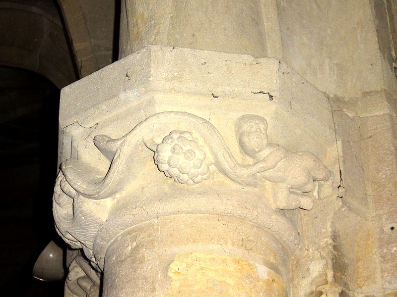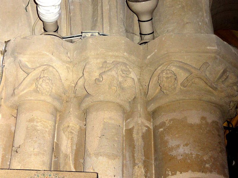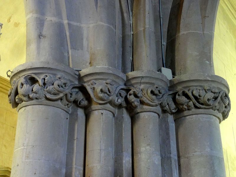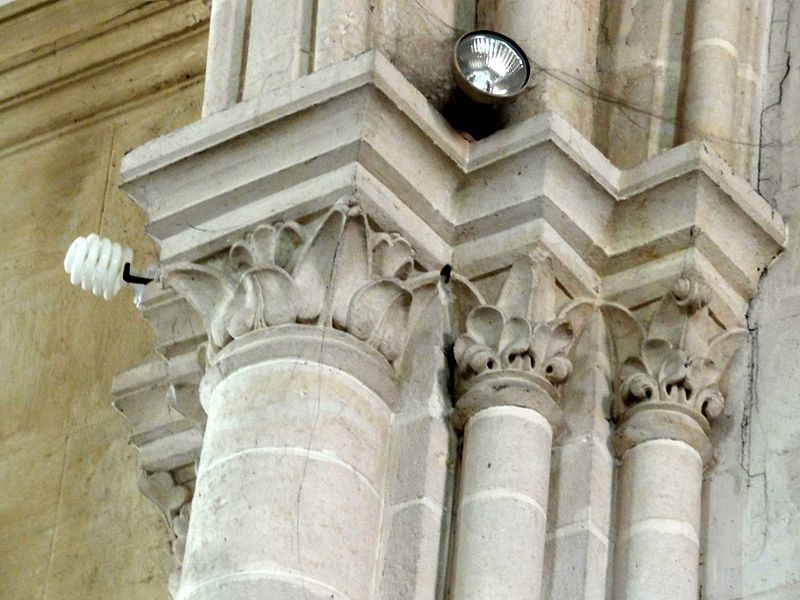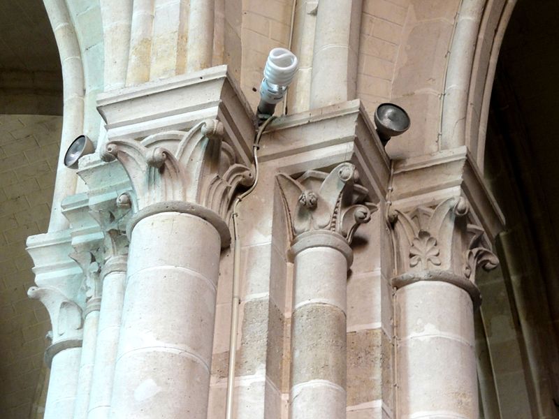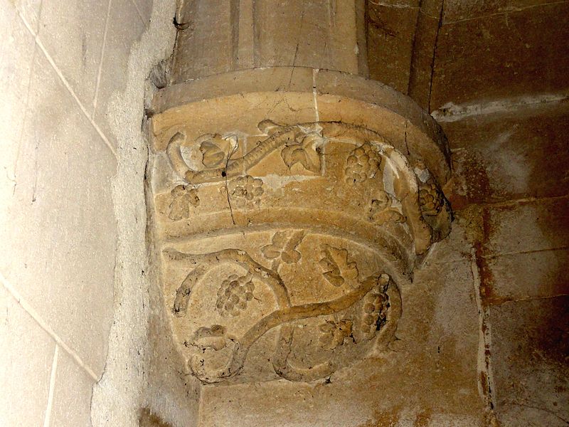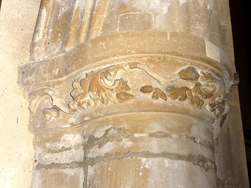L'intérieur révèle un contraste marqué entre la simplicité de la nef, inspirée des nefs-granges romanes, et l'élégance gothique du chœur, élevé et entièrement voûté d'ogives. La porte d'entrée, percée au milieu du mur, donne sur un pilier et oblige à descendre plusieurs marches ; les arcades en tiers-point qui séparent la nef des bas-côtés sont moulurées côté nef mais dépourvues de colonnettes et chapiteaux côté bas-côtés. Les bas-côtés ont été rehaussés et leurs fenêtres en plein cintre datent au plus tôt du milieu du XVIe siècle ; leurs toitures formaient à l'origine des appentis indépendants, comme le suggèrent des ouvertures hautes désormais obstruées. L'arc triomphal repose sur chapiteaux à crochets et colonnettes engagées, et des traces de pierres de réserve et de faisceaux de colonnettes témoignent d'un projet initial d'une nef plus haute et voûtée auquel on renonça en cours de chantier, selon Louis Régnier.