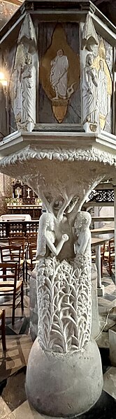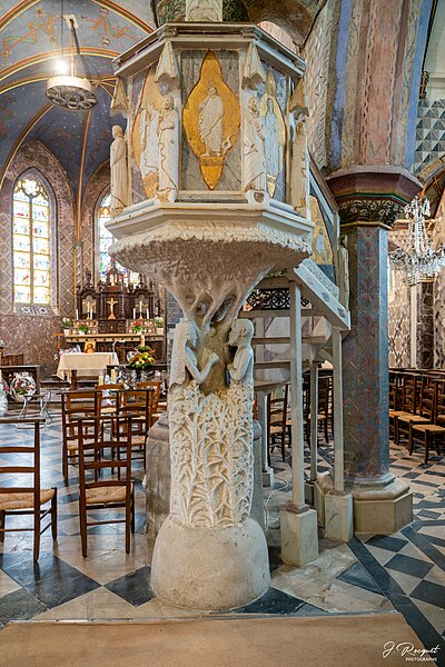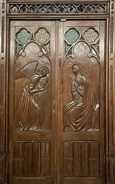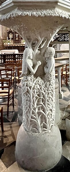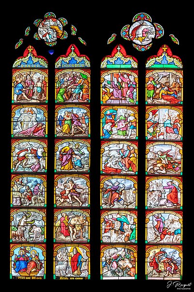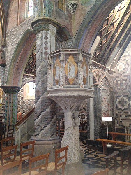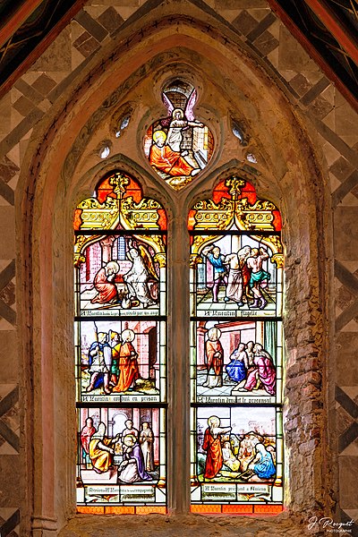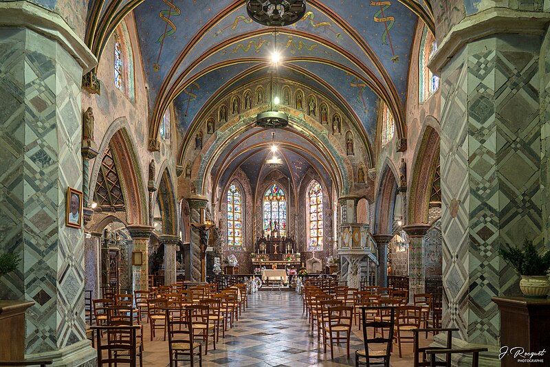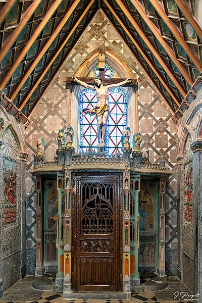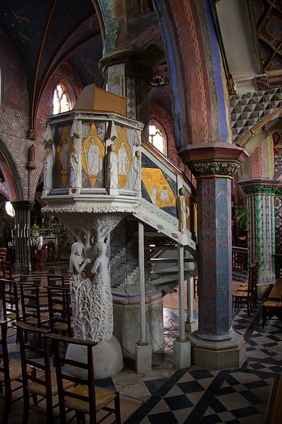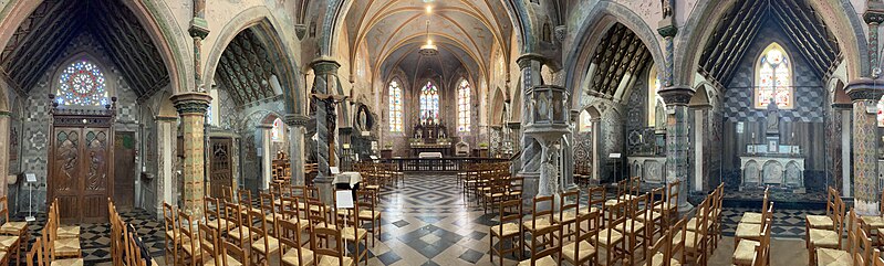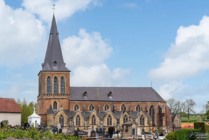 L'église Saint-Quentin de Wirwignes présente extérieurement un aspect classique du XIXe siècle, tandis que son intérieur offre un ensemble complet de décorations naïves réalisées par l'abbé Paul Amédée Lecoutre ; l'édifice est inscrit au titre des monuments historiques depuis 2006. Probablement fondée au début du XIIe siècle, une construction dite « basse église » subsista comme nef jusqu'en 1876 ; la base du clocher pourrait remonter à cette période. Un nouveau chœur fut édifié à la fin du XVe ou au début du XVIe siècle, puis le clocher fit l'objet de modifications au XVIIe siècle. Des campagnes de restauration sont également intervenues entre 1812 et 1863. Après des voyages en Terre Sainte, en Égypte et en Italie, l'abbé Lecoutre, arrivé comme prêtre à Wirwignes en 1864, projeta en 1867 de transformer l'église en un « catéchisme monumental » permettant aux paroissiens d'appréhender la Bible par le mobilier et la décoration intérieure ; les travaux commencèrent en 1869. Huit chapelles latérales furent ajoutées le long de la basse église, qui fut détruite en 1876 ; le clocher fut surélevé d'un niveau et, d'après les dessins de l'ingénieur Émile Gérard, une flèche le couronna en 1879-1880. De nouveaux vitraux furent posés en 1882. Pendant l'Entre-deux-guerres, la chapelle de la Vierge fut transformée en grotte de Lourdes, avec des faux rochers en ciment armé. Parmi les éléments les plus remarquables figurent les pavements et décorations en marbre, une chaire richement sculptée, la chapelle-grotte de la Vierge et le chemin de croix. L'abbé Lecoutre, né à Wierre-Effroy en 1830, mourut en 1906 et repose au pied de son église ; s'il est souvent présenté comme un artiste populaire ou un précurseur de l'art naïf, son œuvre manifeste aussi une grande érudition et un réel talent artistique. Dès 1873 son travail de bâtisseur était déjà remarqué, et des descriptions élogieuses de l'intérieur paraissent dans des publications du début du XXe siècle. Une photothèque illustre l'édifice, avec vues extérieures et intérieures, la nef et le chœur, la chapelle de la Vierge transformée en grotte, la chaire soutenue par Adam et Ève, des portes et confessionnaux sculptés, des stations du chemin de croix et les principaux vitraux du chœur et de la chapelle dédiée à Saint-Quentin.