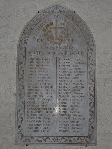 L'église Saint-Quintien se situe au centre du bourg de Picherande, dans le Puy-de-Dôme, en bordure de la route départementale 203. D'origine romane, l'édifice comprend un chevet et une nef du XIIe siècle, des bas-côtés ajoutés au XIVe siècle et des transformations intervenues au XVe siècle. La première mention écrite connue date de 1270, à l'occasion d'un don de Bernard de la Tour. Jusqu'à la Révolution, l'église était dédiée à Notre-Dame; elle porta ensuite le vocable de saint Quintien, évêque de Clermont au début du VIe siècle. À l'origine à nef unique, des moulures d'une grande arcade dans le bas-côté nord suggèrent l'existence d'un ancien porche ouvrant sur le mur gouttereau nord. Au XIVe siècle, deux chapelles latérales aménagées dans la première travée formèrent les bras d'un transept, puis au XVe siècle ces chapelles furent agrandies au sud pour constituer un véritable bas-côté ; des traces d'arrachement du mur occidental de la chapelle sud sont encore visibles dans la maçonnerie du pilier de la nef. Au XIXe siècle, des contreforts massifs furent ajoutés pour étayer le mur gouttereau sud qui s'était effondré et le clocher fut reconstruit. Le cimetière paroissial jouxtant l'église fut transféré en 1905, à environ 200 mètres à l'ouest, et en 1935 un hangar métallique sur fondations en béton, destiné au marché aux fromages du dimanche, fut édifié contre le mur méridional. Hormis le clocher, le reste de l'édifice est inscrit au titre des monuments historiques depuis le 15 octobre 1971. Orientée est‑ouest, l'église présente une nef de quatre travées flanquée de deux bas-côtés, le collatéral nord comptant une travée de moins que le sud. Le portail, surmonté du clocher à flèche carrée, ouvre dans le collatéral nord ; la porte du bas-côté sud donnait initialement sur le cimetière et se trouve extérieurement à environ un mètre de hauteur. Le chœur, voûté en cul-de-four, se termine par une abside hémicirculaire ornée de modillons et surmontée d'un clocheton ; deux sacristies rectangulaires lui ont été ajoutées à l'extérieur. La nef et le chœur conservent des caractères romans, tandis que les bas-côtés, de style gothique, présentent des clés de voûte sculptées. Parmi le mobilier, un bâton de procession en argent provenant d'une croix processionnelle est classé au titre des monuments historiques. Le clocher abrite deux cloches : l'une de 1847 (diamètre 1,18 m) et une autre de 1960 (0,95 m), cette dernière remplaçant une cloche fêlée de 1926 ; une troisième cloche de 0,39 m est accrochée au clocheton au‑dessus du chœur.